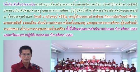 วท.อุบลฯ ให้กำลังใจตัวแทนนักเรียน นักศึกษา ที่จะเข้าร่วมการประกวดสิ่งประดิษฐิ์ของคนรุ่นใหม่ ระดับภาคตะวันออกเฉียงเหนือ ประจำปีการศึกษา 2568