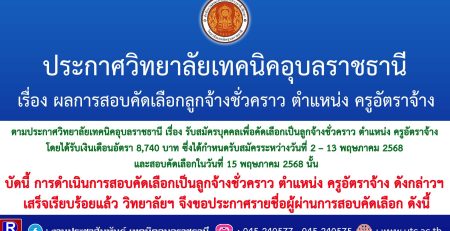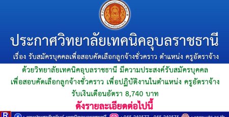 ประกาศวิทยาลัยเทคนิคอุบลราชธานี เรื่อง รับสมัครบุคคลเพื่อเลือกสรรและจัดจ้างเป็นพนักงานราชการทั่วไป