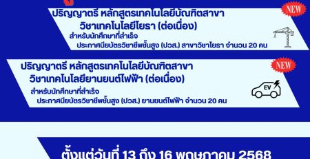 เชิญชวน ลงทะเบียนรายวิชาของ นักเรียน นักศึกษา ระดับชั้น ปวช. และ ปวส. ภาคเรียนที่ 2 ปีการศึกษา 2568 (เพิ่มเติม…)