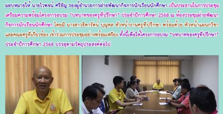 คำสั่งแต่งตั่งครูที่ปรึกษา ประจำปีการศึกษา 2568 Download [5.31 MB] คู่มือครูที่ปรึกษา ประจำปีการศึกษา 2568 (เพิ่มเติม…)
