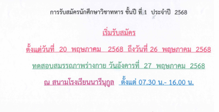 ประกาศ การผ่อนผันการเกณฑ์ทหาร ประจำปีการศึกษา ๒๕๖๘ (คนที่เกิดในปี พ.ศ.๒๕๔๘)