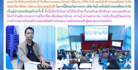 บริษัท โซนี่ เทคโนโลยี (ประเทศไทย) จำกัด เข้าแนะแนวโครงการฝึกงาน บริษัท โซนี่ เทคโนโลยี (ประเทศไทย) จำกัด ประจำปีการศึกษา 2569 ณ วิทยาลัยเทคนิคอุบลราชธานี