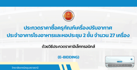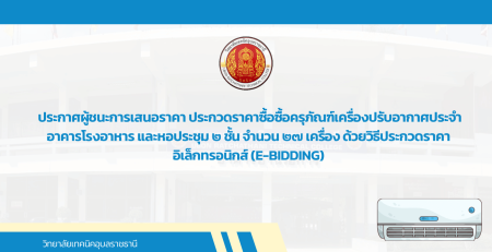 - ประกาศผู้ชนะการเสนอราคา ประกวดราคาซื้อซื้อครุภัณฑ์เครื่องปรับอากาศประจำอาคารโรงอาหาร และหอประชุม ๒ ชั้น จำนวน ๒๗ เครื่อง ด้วยวิธีประกวดราคาอิเล็กทรอนิกส์ (e-bidding)
