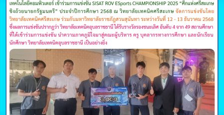 แผนกวิชาเทคโนโลยีคอมพิวเตอร์ เข้าร่วมการแข่งขัน SISAT ROV ESports CHAMPIONSHIP 2025 “ศึกแห่งศรีสะเกษ ชิงถ้วยนายกรัฐมนตรี” ประจำปีการศึกษา 2568