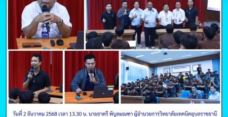 วันที่ 26 พฤศจิกายน 2568 นายธาตรี พิบูลมณฑา ผู้อำนวยการวิทยาลัยเทคนิคอุบลราชธานี ปฏิบัติ (เพิ่มเติม…)