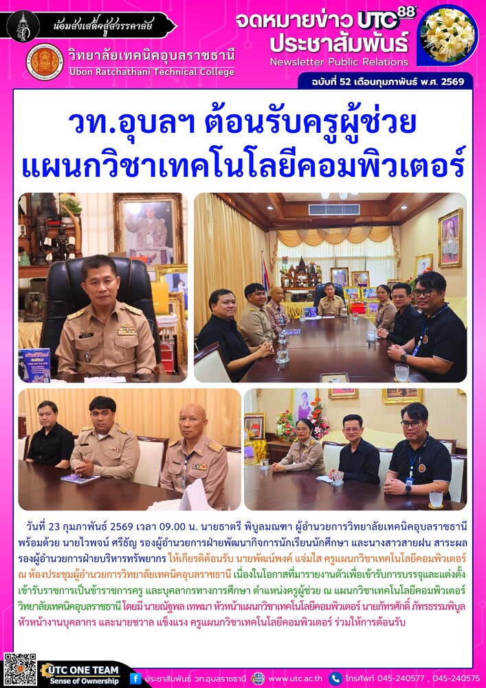 - วท.อุบลฯ ต้อนรับครูผู้ช่วย แผนกวิชาเทคโนโลยีคอมพิวเตอร์
