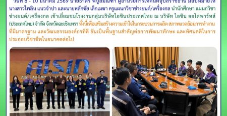 วท.อุบลฯ เข้ารับฟังการแนะนำสถานประกอบการ จาก บริษัท มิตซูบิชิ อิเล็กทริค คอนซูมเมอร์ โปรดักส์ (ประเทศไทย) จำกัด