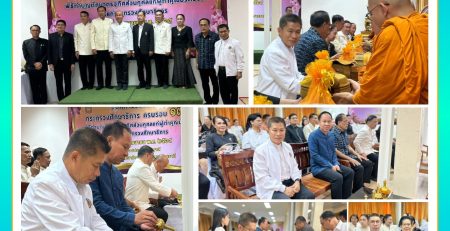 วท.อุบลฯ จัดพิธีสวดถอดถอนก่อนก่อสร้างอาคารหลังคาคลุมอเนกประสงค์