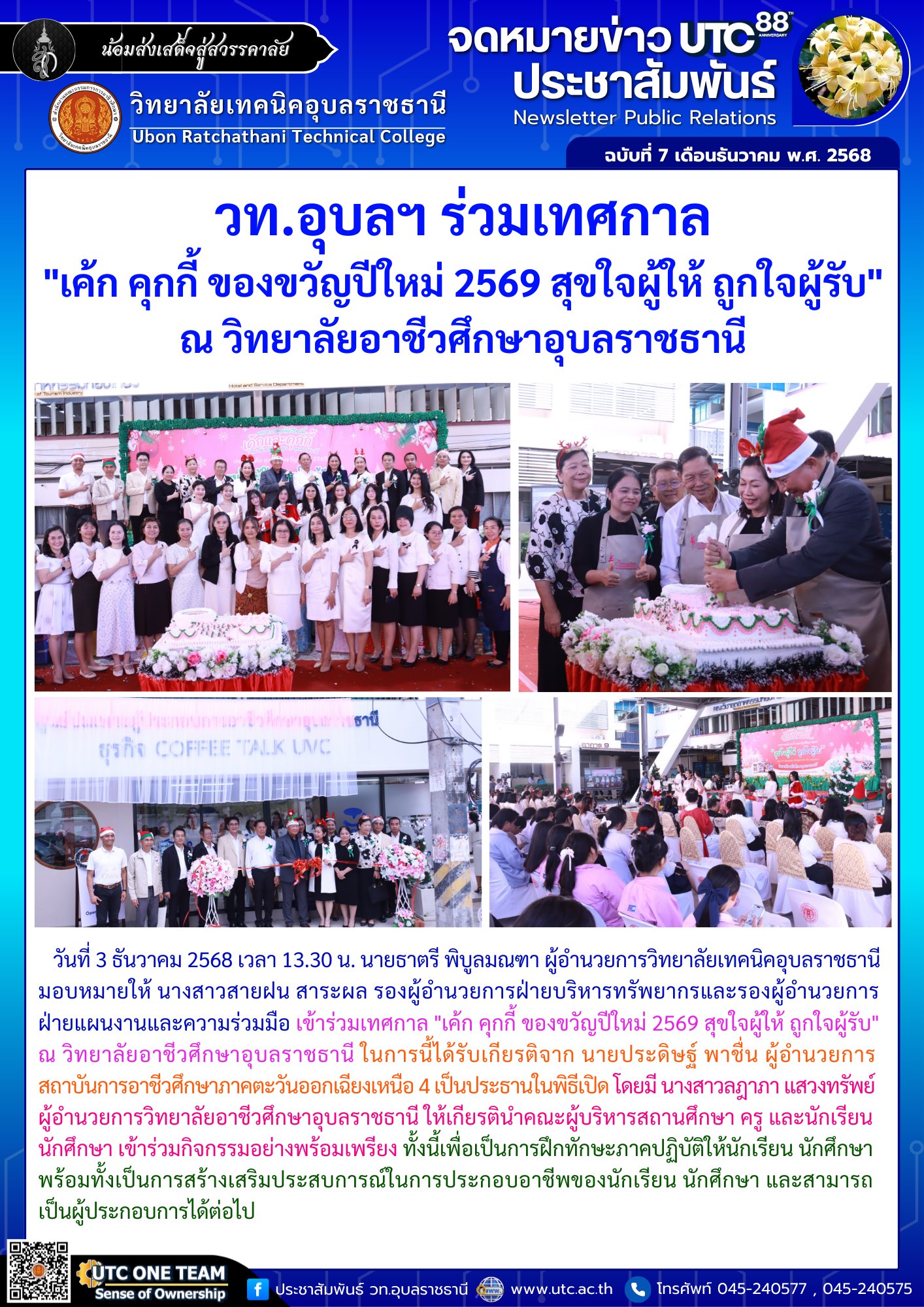 วท.อุบลฯ เข้าร่วมเทศกาล “เค้ก คุกกี้ ของขวัญปีใหม่ 2569 สุขใจผู้ให้ ถูกใจผู้รับ” ณ วิทยาลัยอาชีวศึกษาอุบลราชธานี