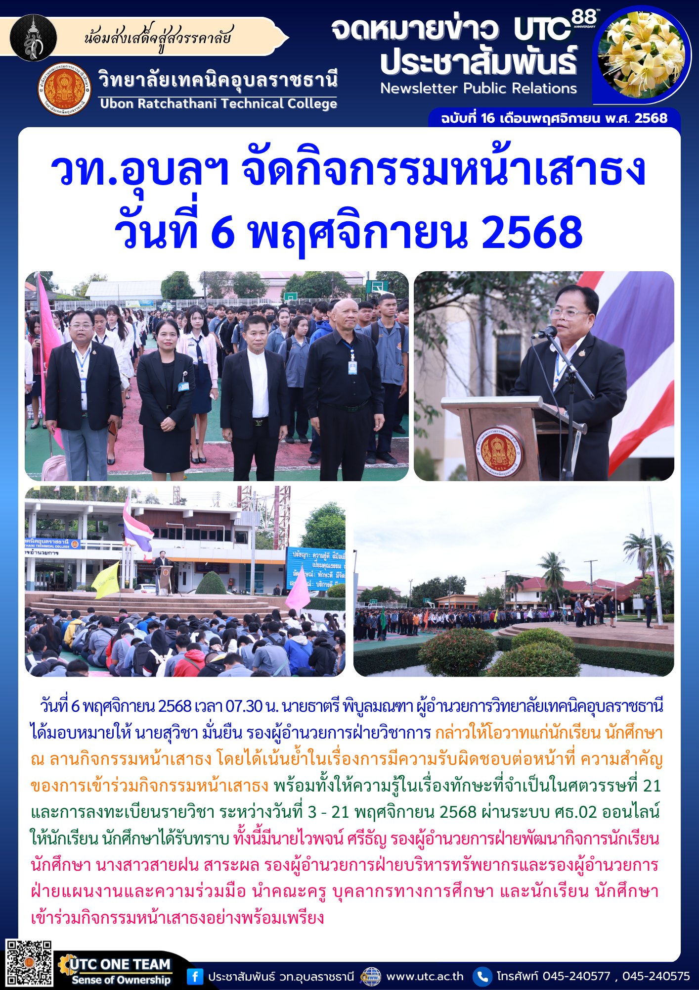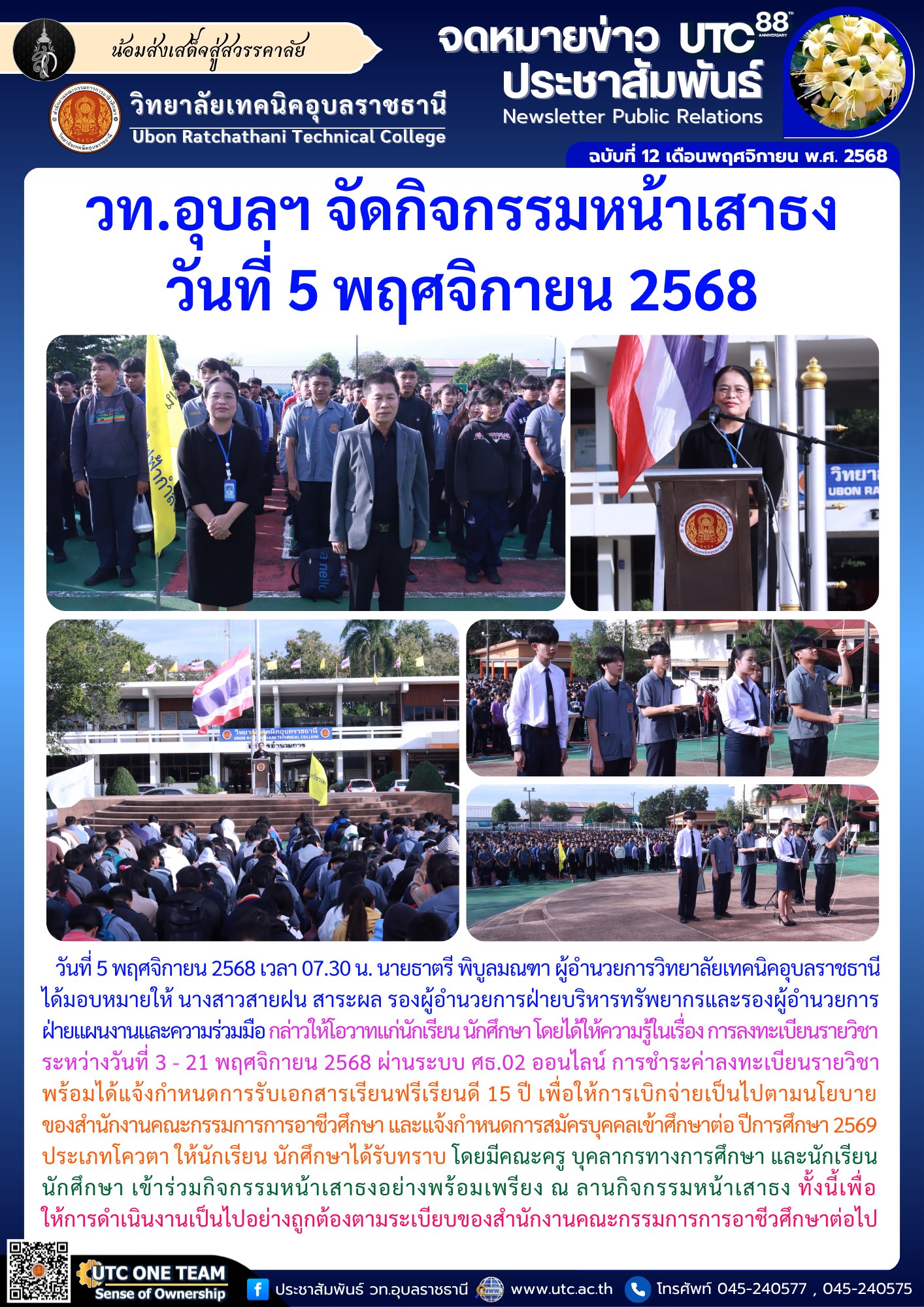 วท.อุบลฯ จัดกิจกรรมหน้าเสาธง วันที่ 5 พฤศจิกายน 2568