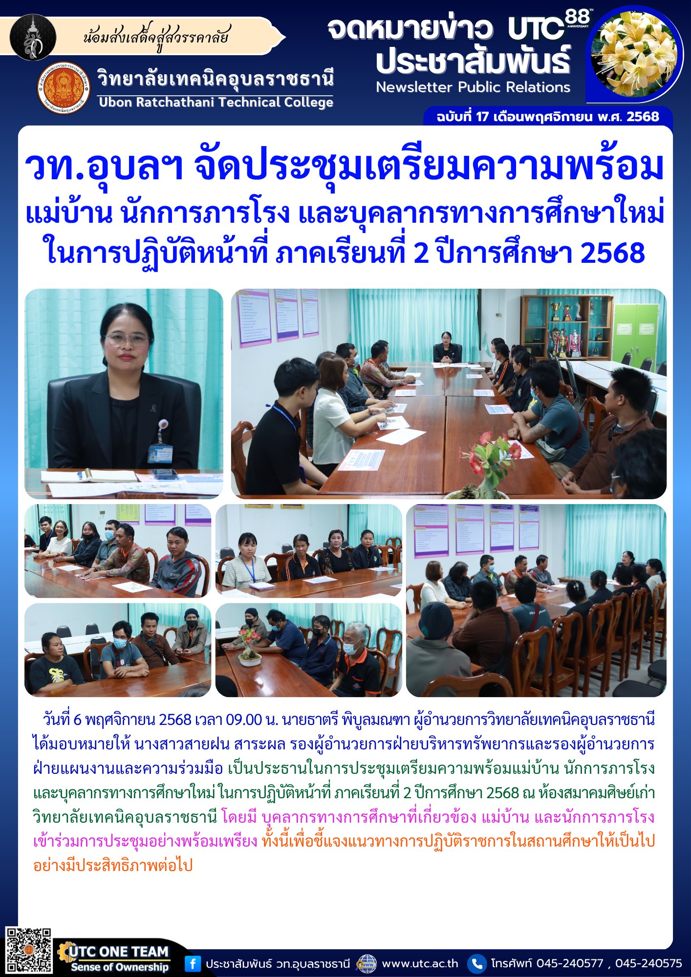 วันที่ 6 พฤศจิกายน 2568 เวลา 09.00 น. นายธาตรี พิบูลมณฑา ผู้อำนวยการวิทยาลัยเทคนิคอุบลราชธานี (เพิ่มเติม…)