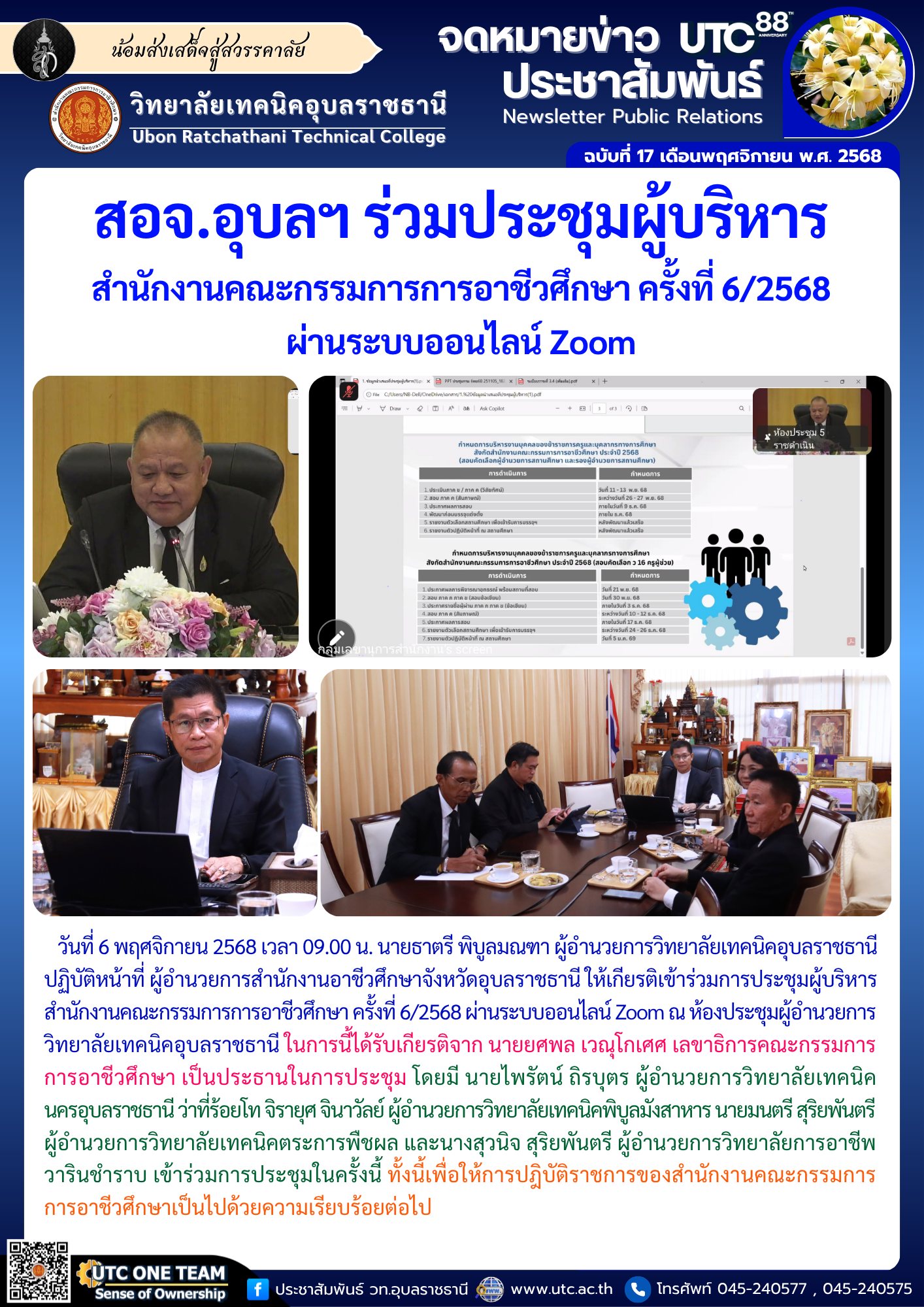 สอจ.อุบลฯ ร่วมประชุมผู้บริหารสำนักงานคณะกรรมการการอาชีวศึกษา ครั้งที่ 6/2568 ผ่านระบบออนไลน์ Zoom