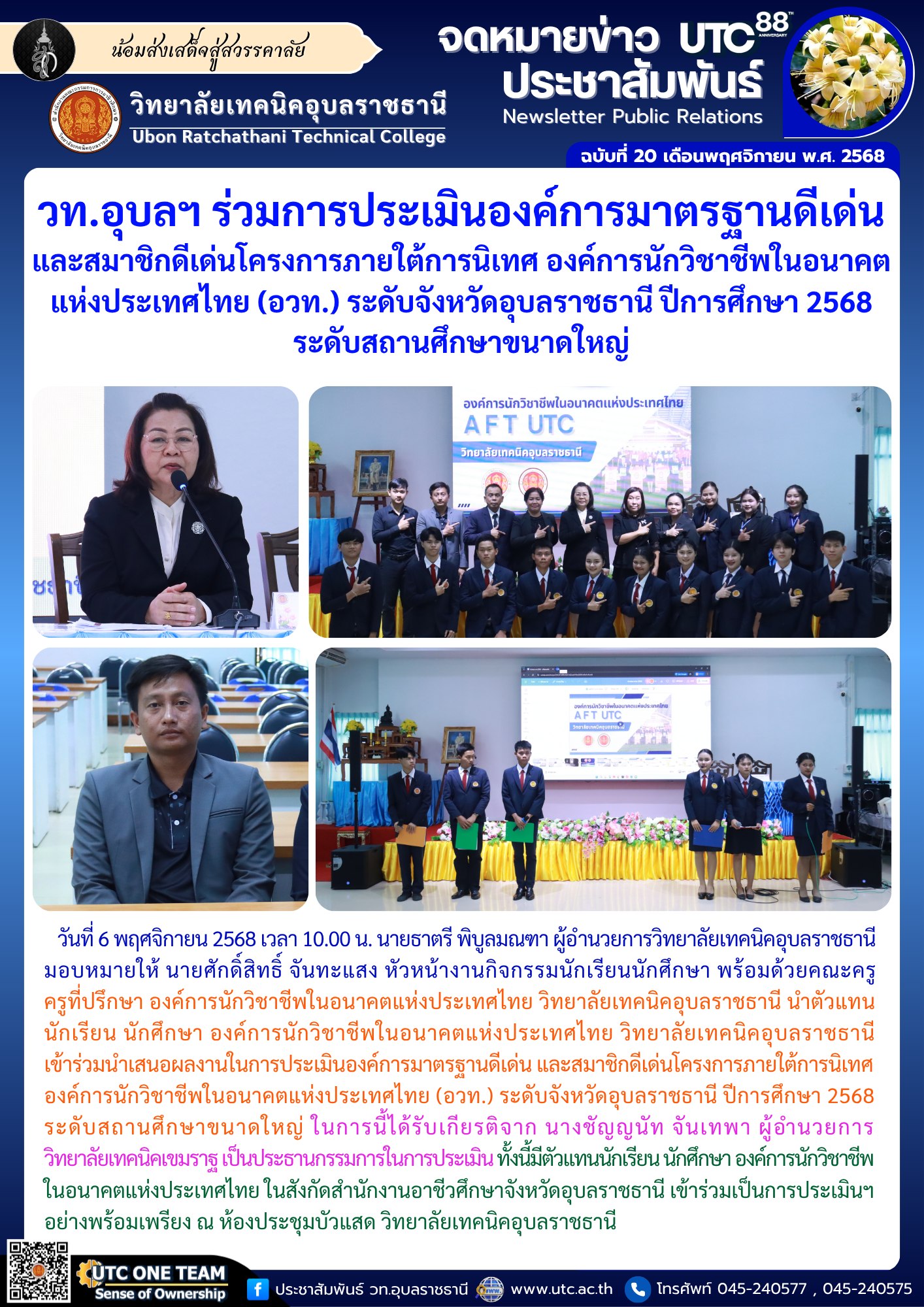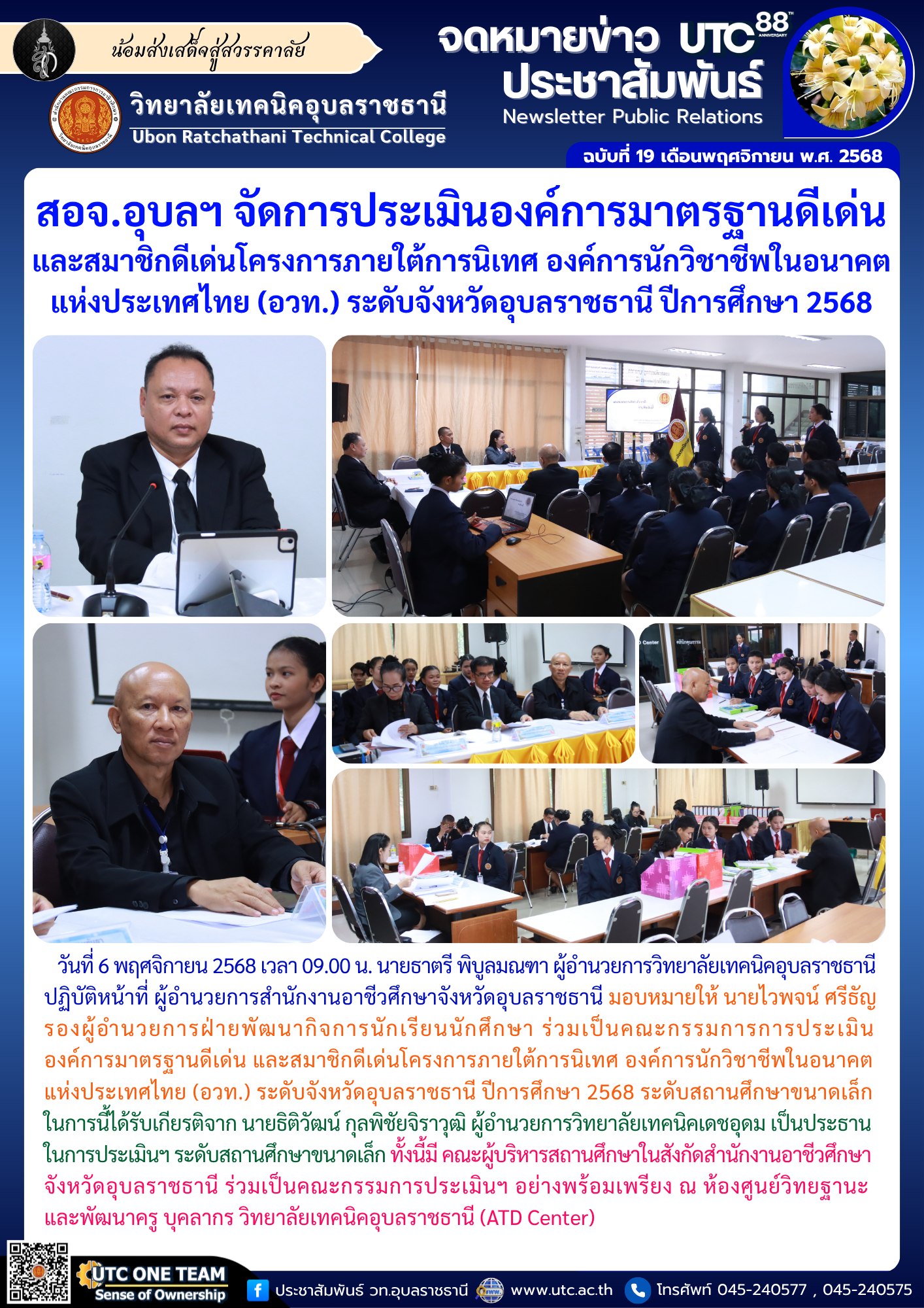 การประเมินองค์การมาตรฐานดีเด่น และสมาชิกดีเด่นโครงการภายใต้การนิเทศ องค์การนักวิชาชีพในอนาคตแห่งประเทศไทย (อวท.) ระดับจังหวัดอุบลราชธานี ปีการศึกษา 2568