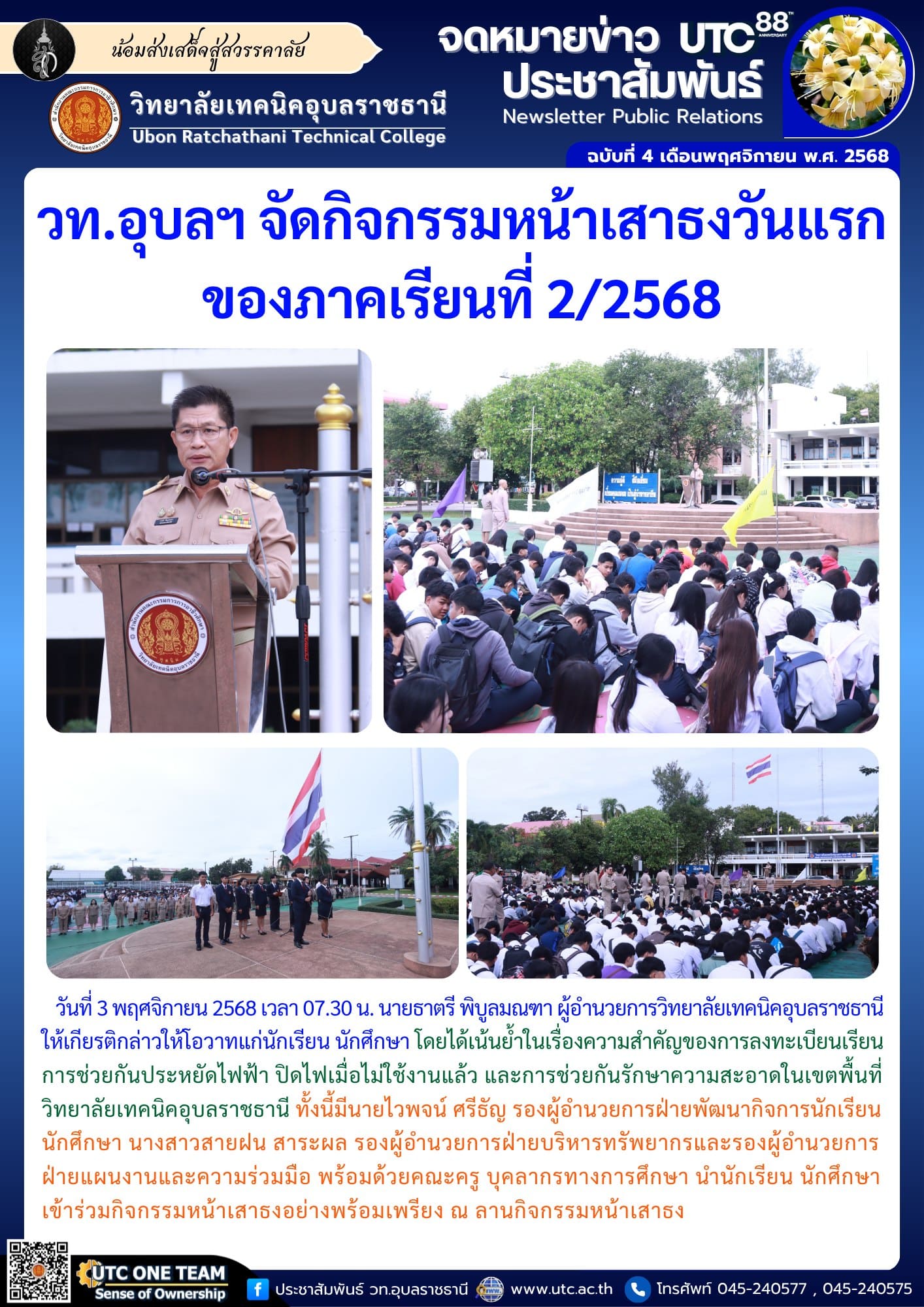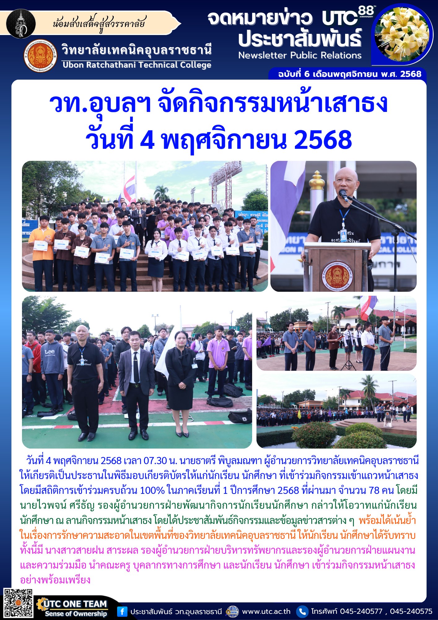 วท.อุบลฯ จัดกิจกรรมหน้าเสาธง วันที่ 4 พฤศจิกายน 2568