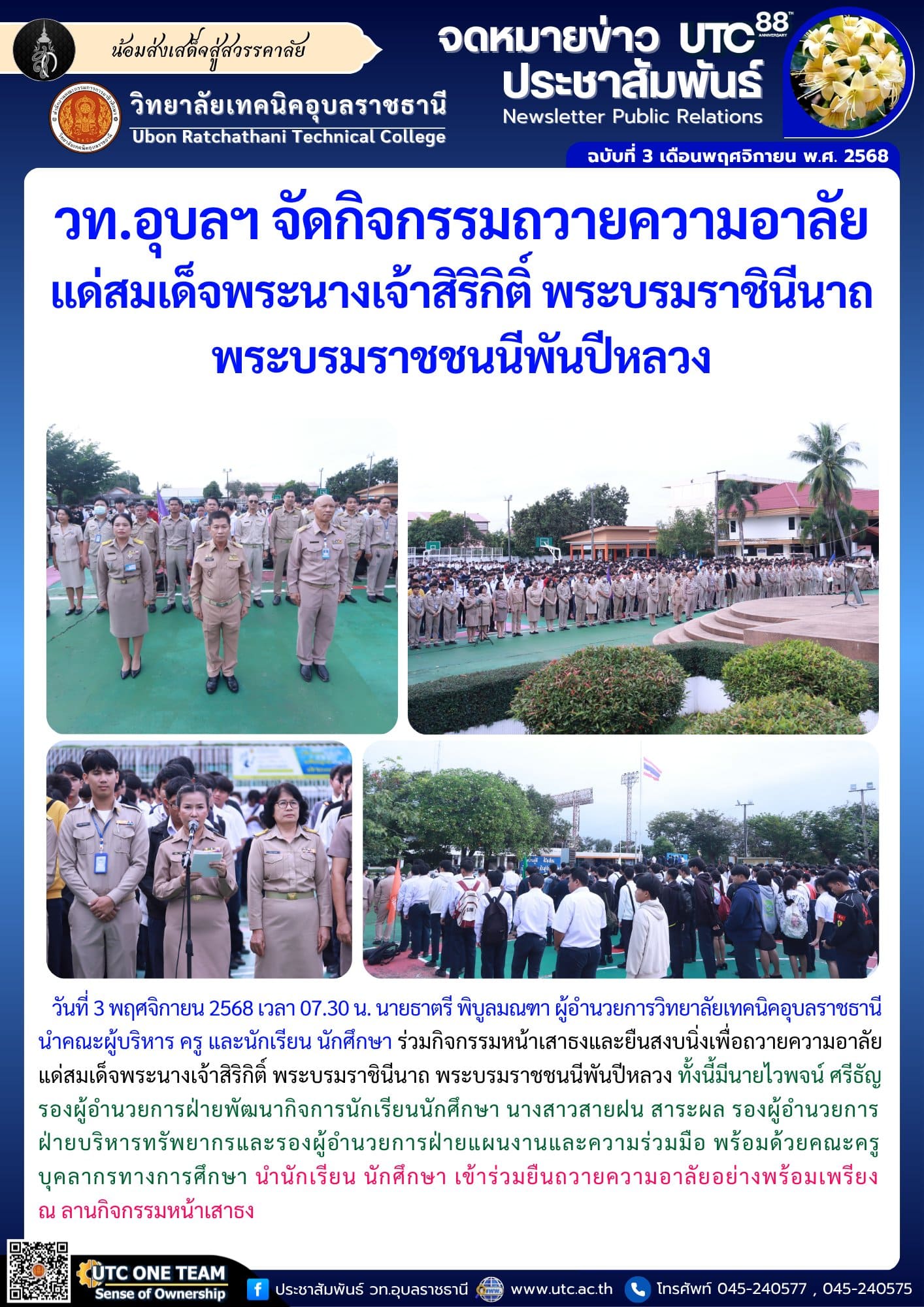 วท.อุบลฯ จัดกิจกรรมถวายความอาลัยแด่สมเด็จพระนางเจ้าสิริกิติ์พระบรมราชินีนาถพระบรมราชชนนีพันปีหลวง