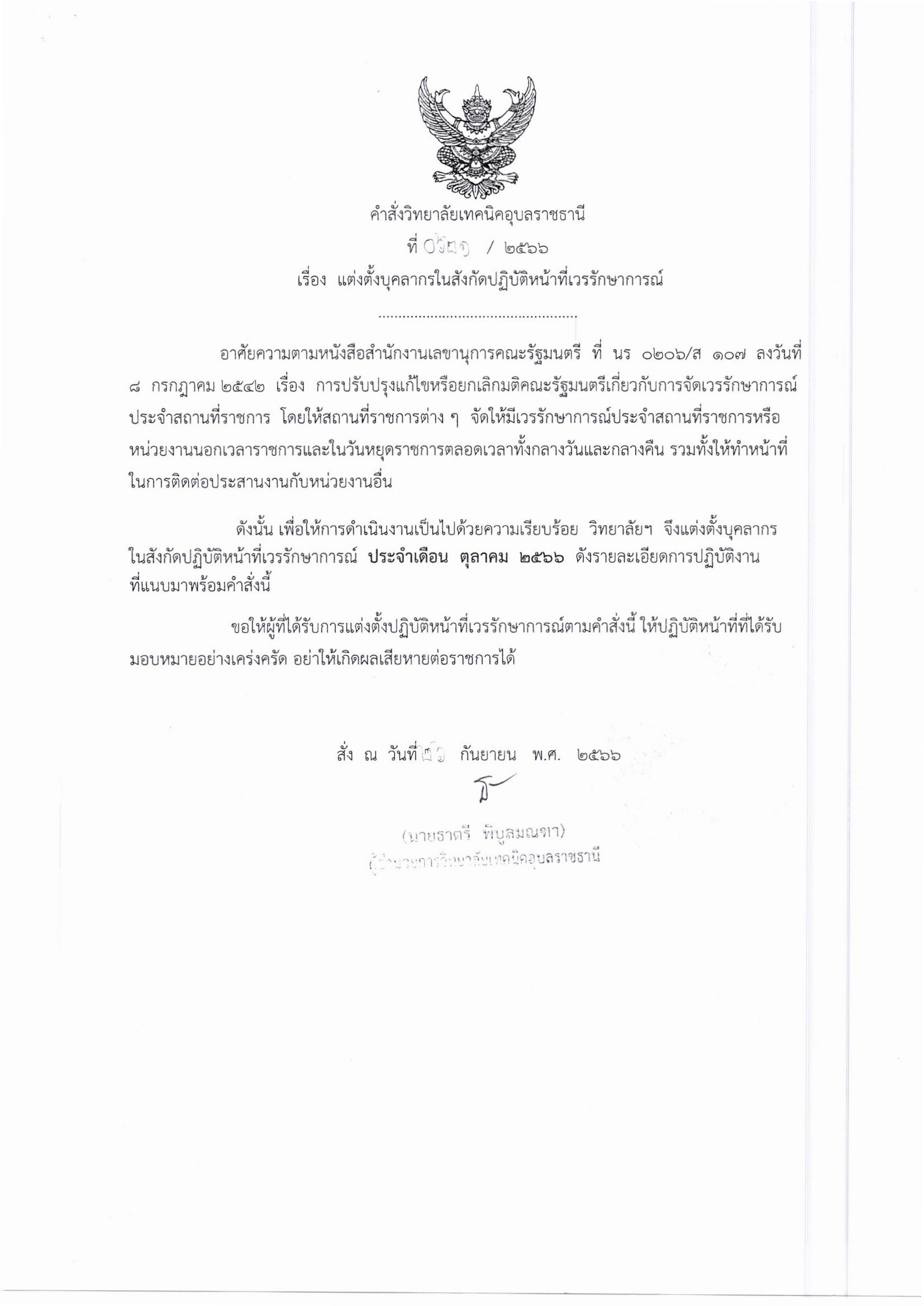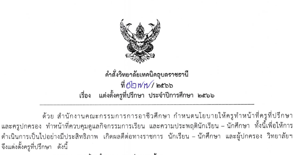 คำสั่งวิทยาลัยเทคนิคอุบลราชธานี 2566