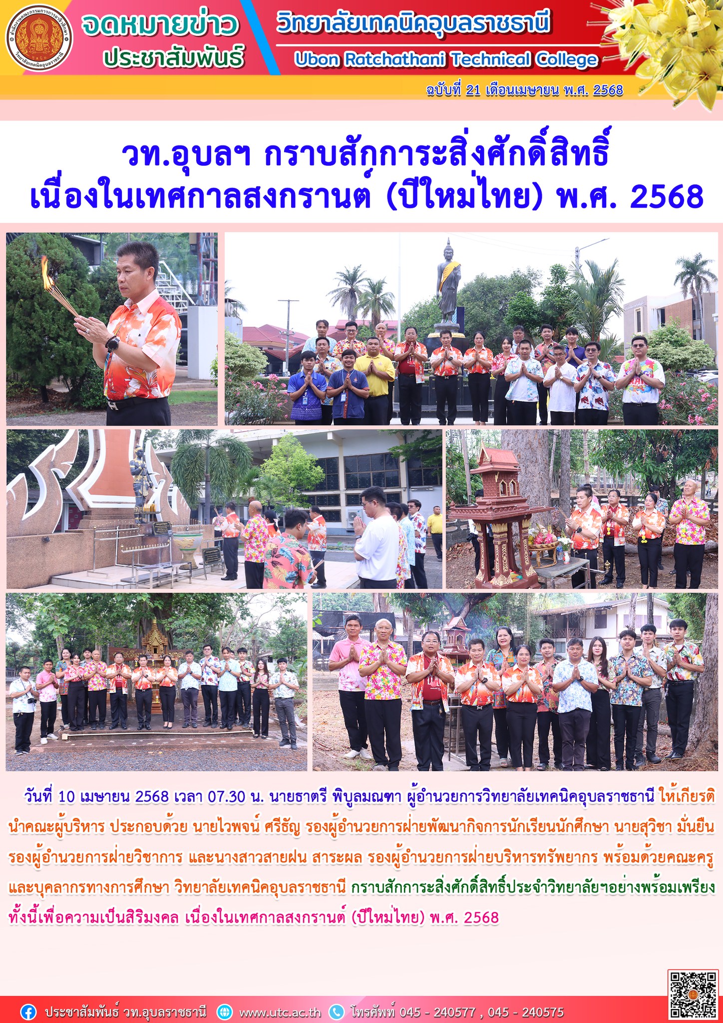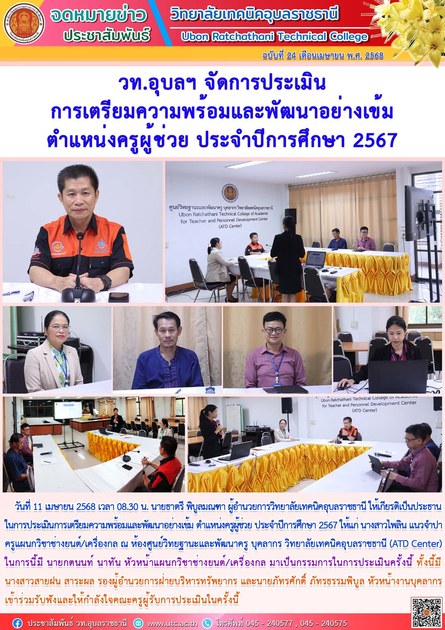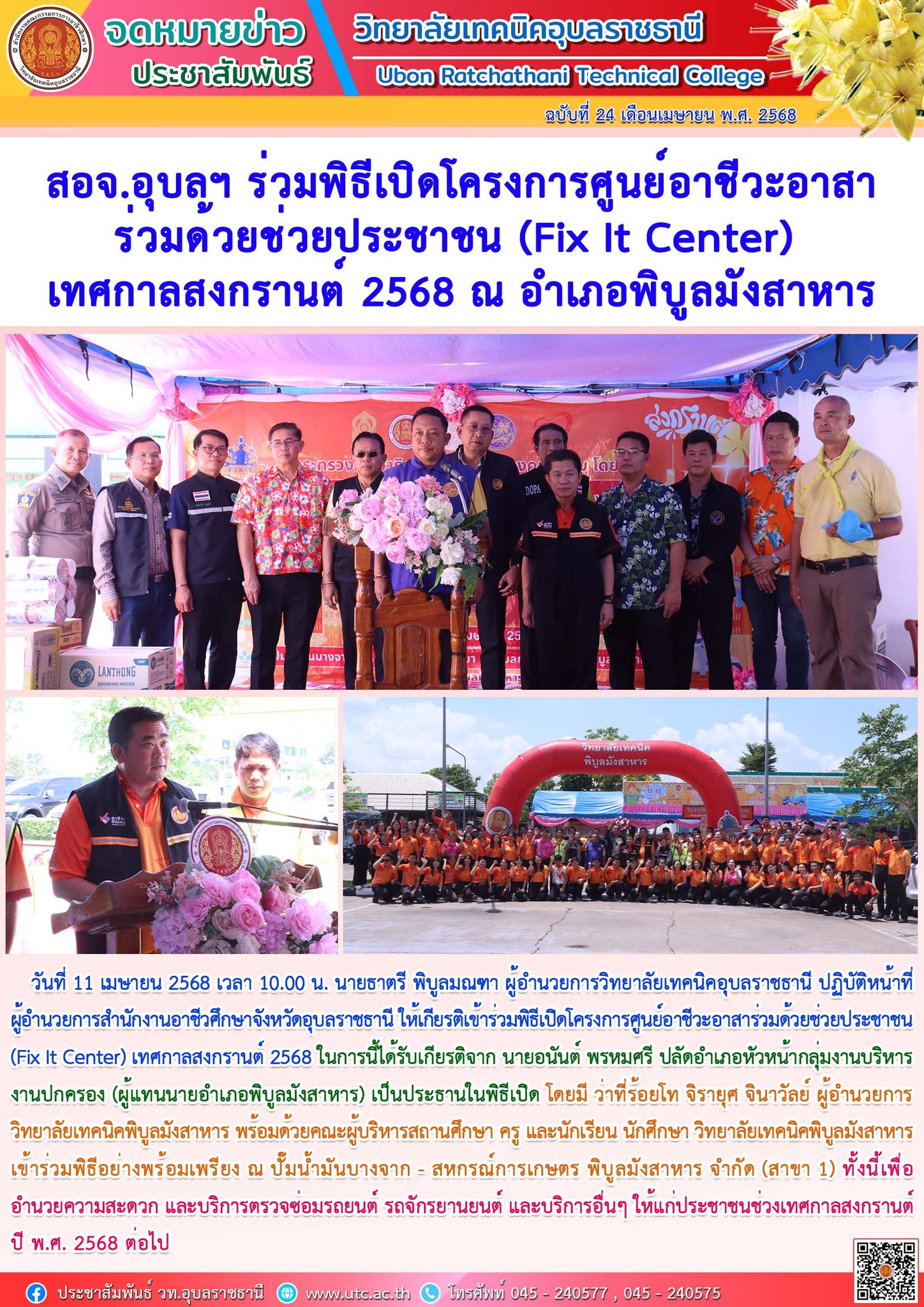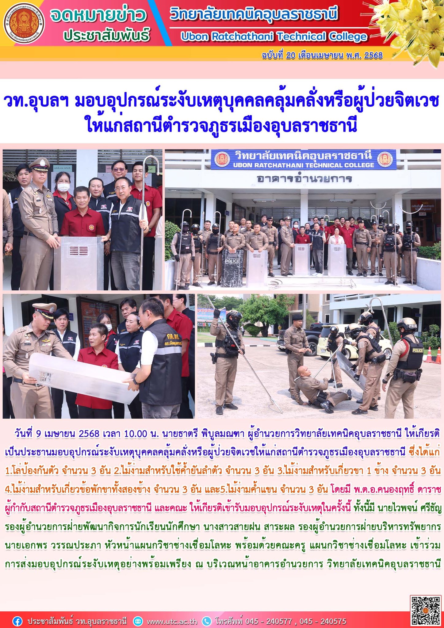 วันที่ 12 ธันวาคม 2568 เวลา 08.30 น. นายธาตรี พิบูลมณฑา ผู้อำนวยการวิทยาลัยเทคนิคอุบลราชธานี (เพิ่มเติม…)