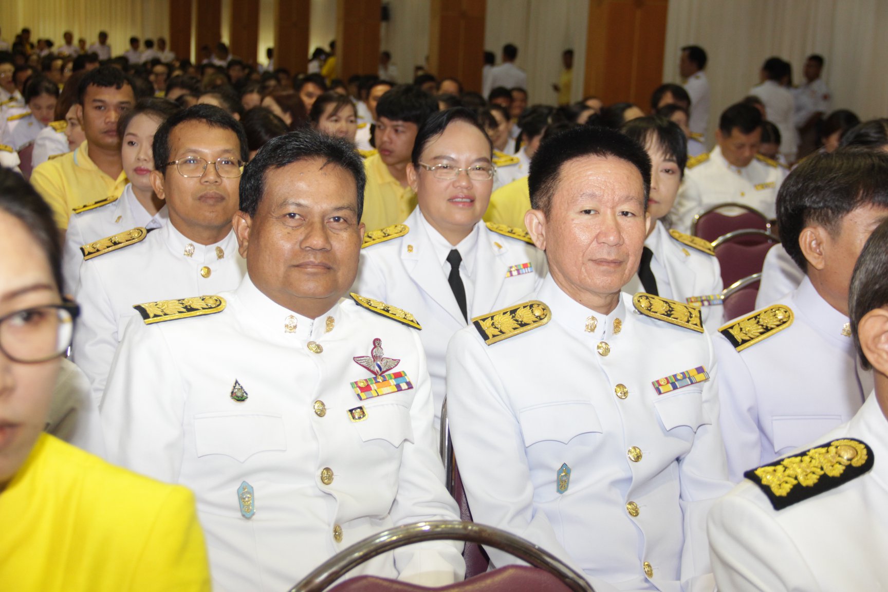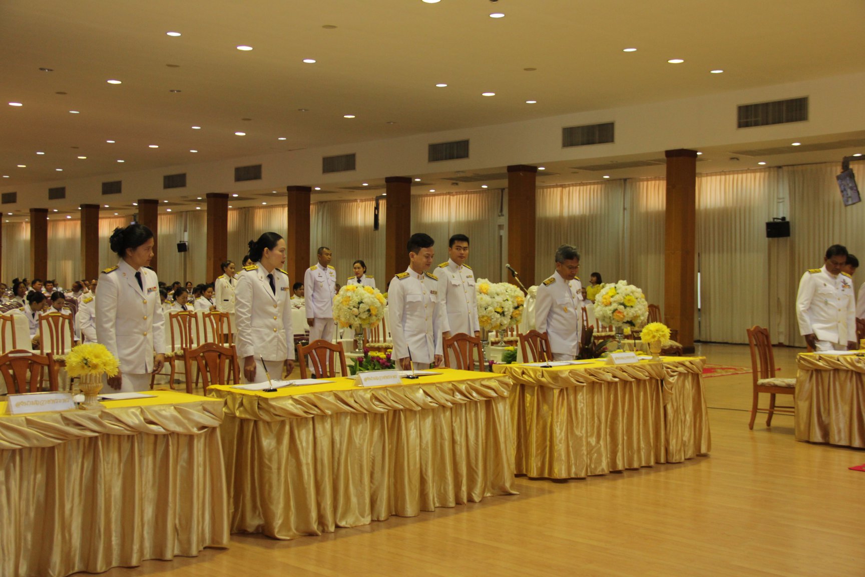 พิธีถวายพระพรชัยมงคล ถวายเครื่องราชสักการะ วางพานพุ่มทอง พุ่มเงิน กล่าวถวายสัตย์ปฏิญาณตนเพื่อเป็นข้าราชการที่ดี