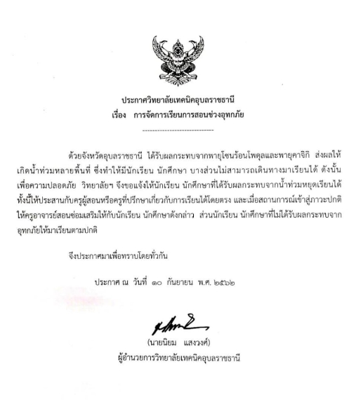 ๒๘ กันยายน ๒๕๖๒ นายนิยม แสงวงศ์ ผู้อำนวยการวิทยาลัยเทคนิคอุบลราชธานี ประธานกรรมการอาชีวศึกษาจังหวัดอุบลราชธานี