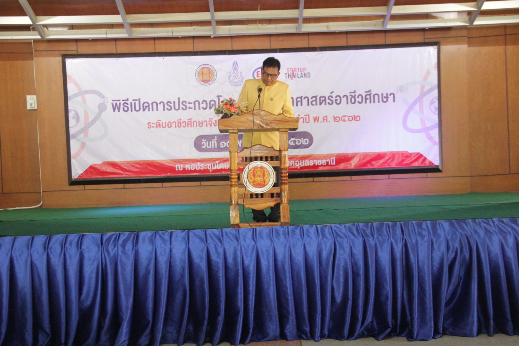 วันที่ (๑๕ พฤศจิกายน ๒๕๖๒) เวลา ๐๙.๐๐ น.อาชีวศึกษาจังหวัดอุบลราชธานีได้จัดงาน“การประกวดโครงงานวิทยาศาสตร์อาชีวศึกษา