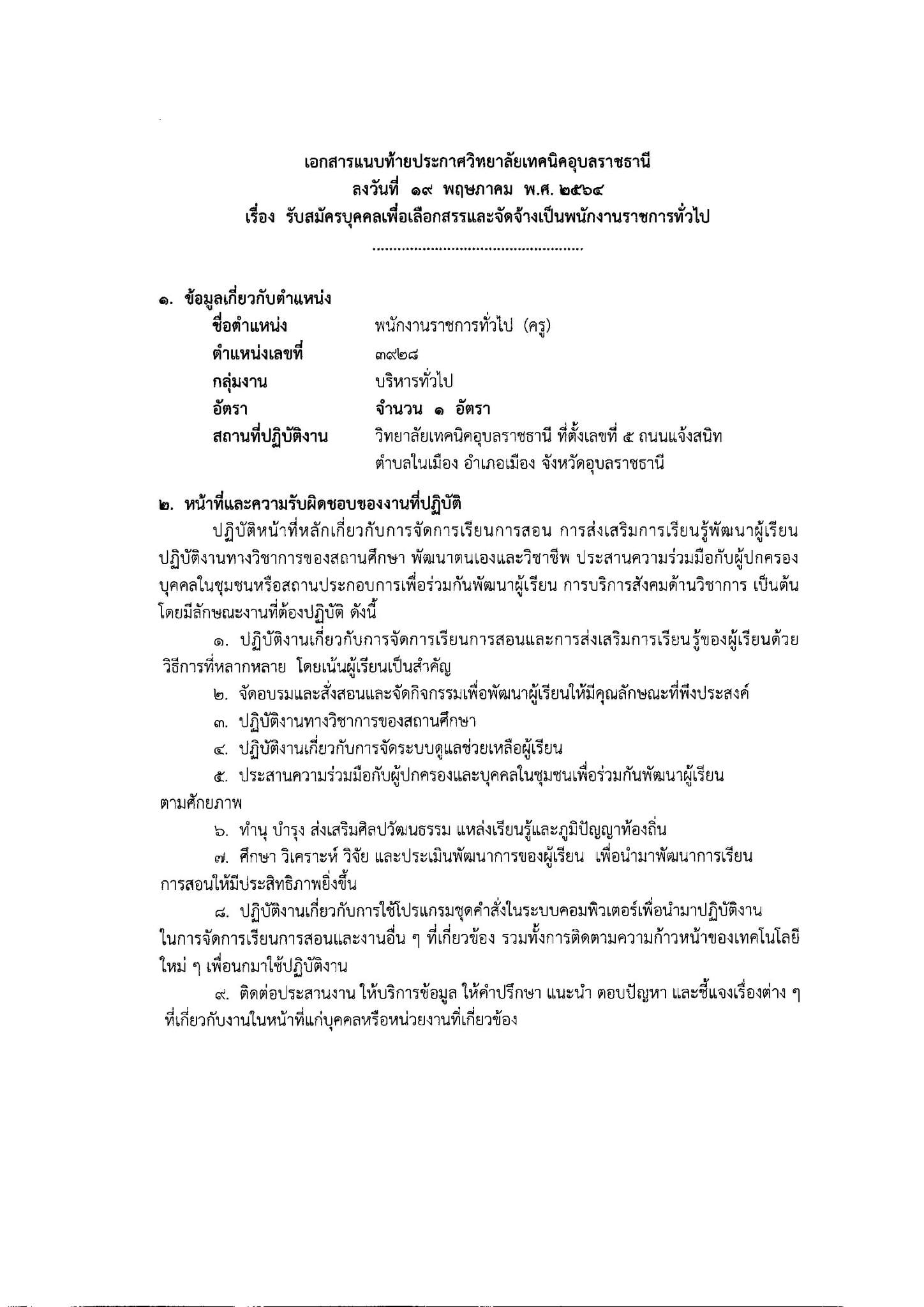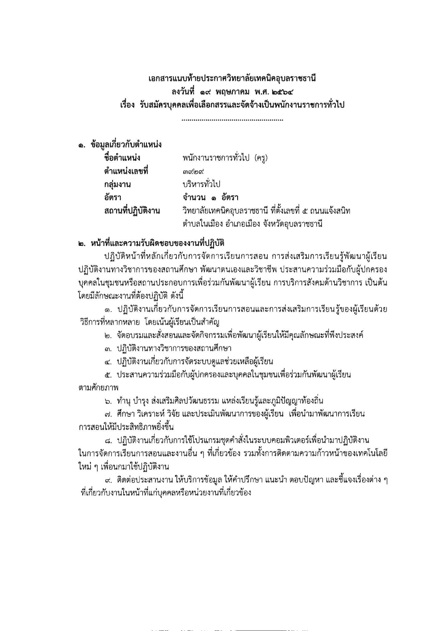 ประกาศวิทยาลัยเทคนิคอุบลราชธานี เรื่อง การรับสมัครนักเรียน นักศึกษา ประจำปีการ (เพิ่มเติม…)