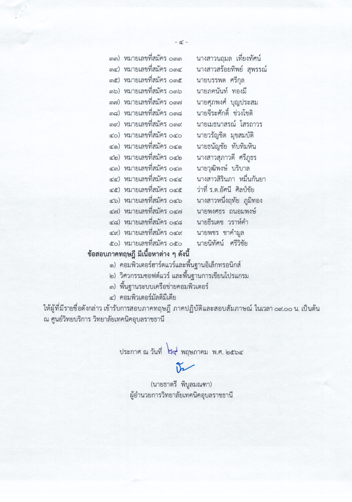 ประกาศรายชื่อผู้มีสิทธิ์สอบภาคทฤษฎี ภาคปฏิบัติและสอบสัมภาษณ์