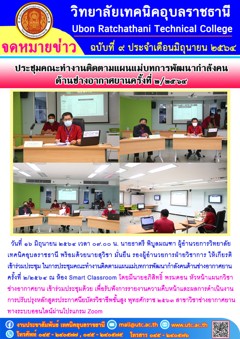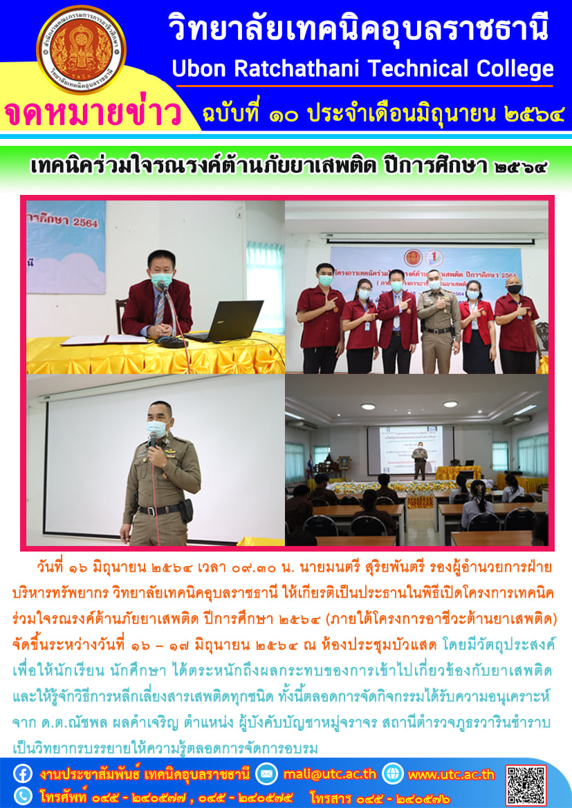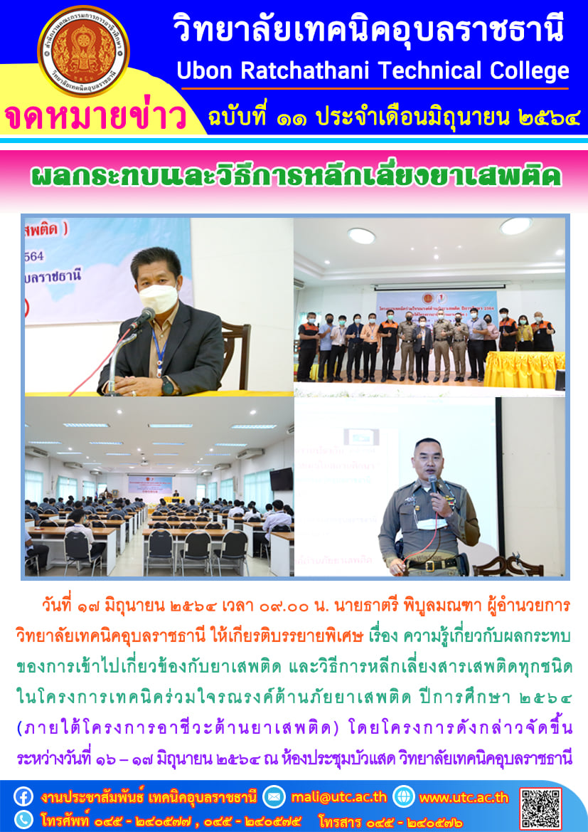 วันที่ ๑๗ มิถุนายน ๒๕๖๔ เวลา ๐๙.๐๐ น. นายธาตรี พิบูลมณฑา ผู้อำนวยการวิทยาลัยเทคนิคอุบลราชธานี (เพิ่มเติม…)