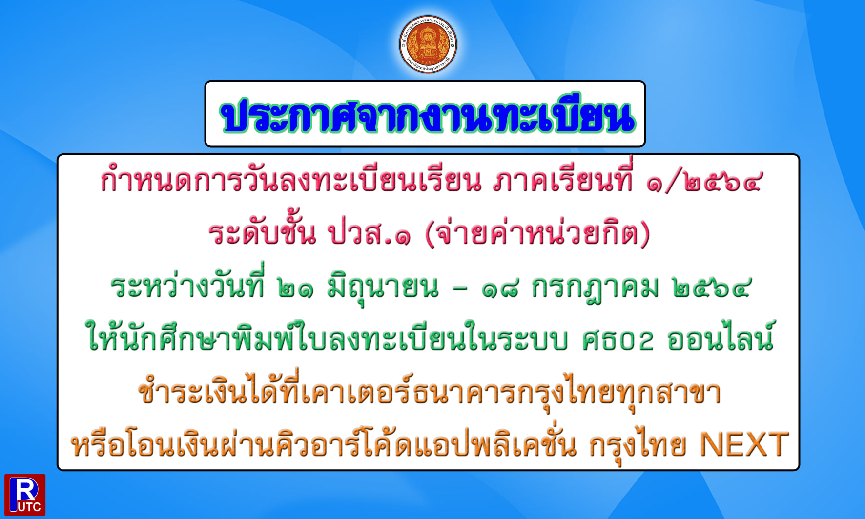 ประกาศจากงานการเงินรายละเอียดค่าลงทะเบียนเรียนซ้ำ ปีการศึกษา 1/2564 วิทยาลัยเทคนิคอุบลราชธานี ระดับประกาศนียบัตร (เพิ่มเติม…)