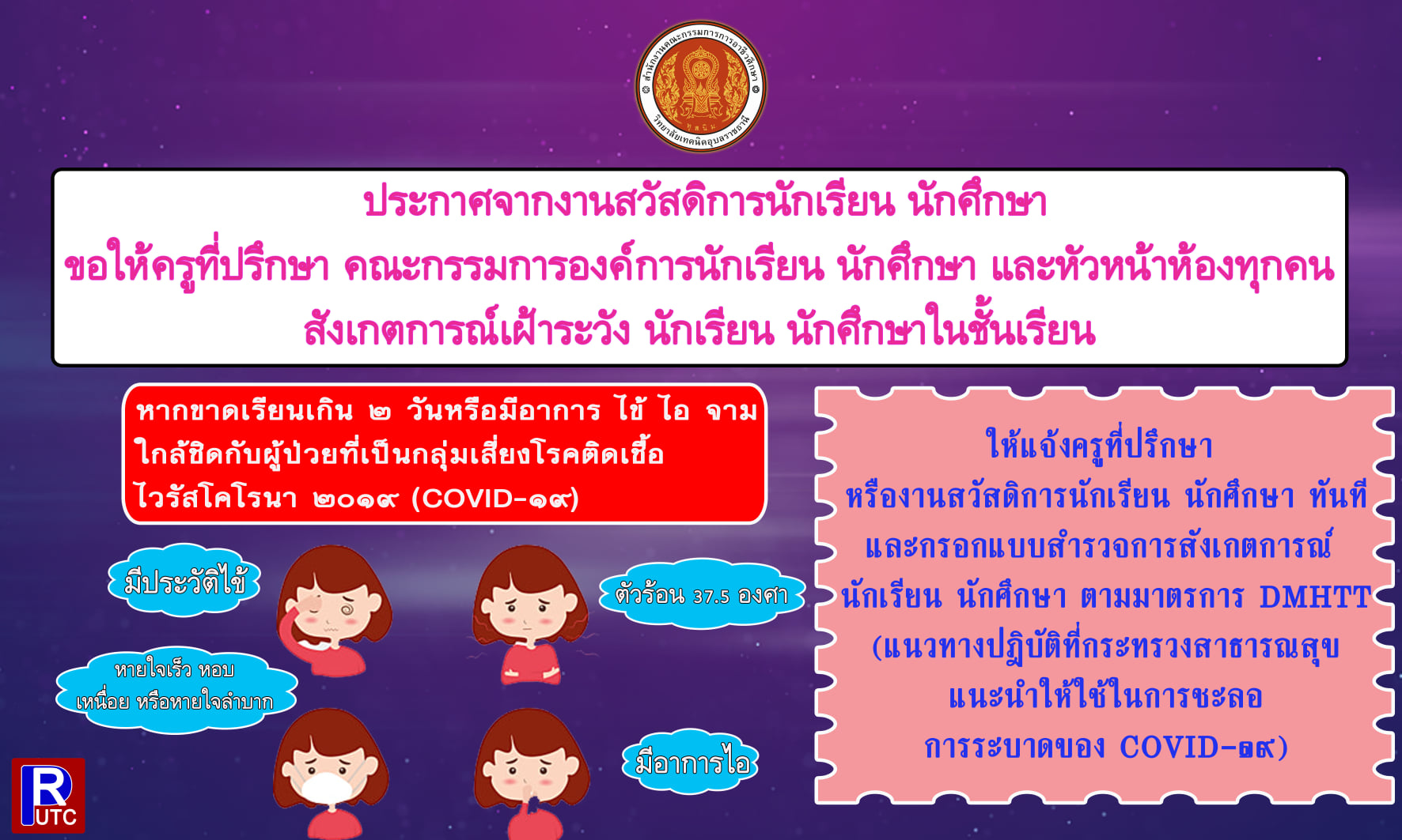 ขอให้นักเรียน นักศึกษาทุกชั้นปี ทำแบบคัดกรองประเมินนักเรียน นักศึกษา