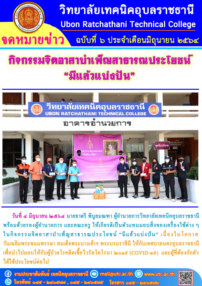 วันที่ ๒ มิถุนายน ๒๕๖๔ นายธาตรี พิบูลมณฑา ผู้อำนวยการวิทยาลัย (เพิ่มเติม…)