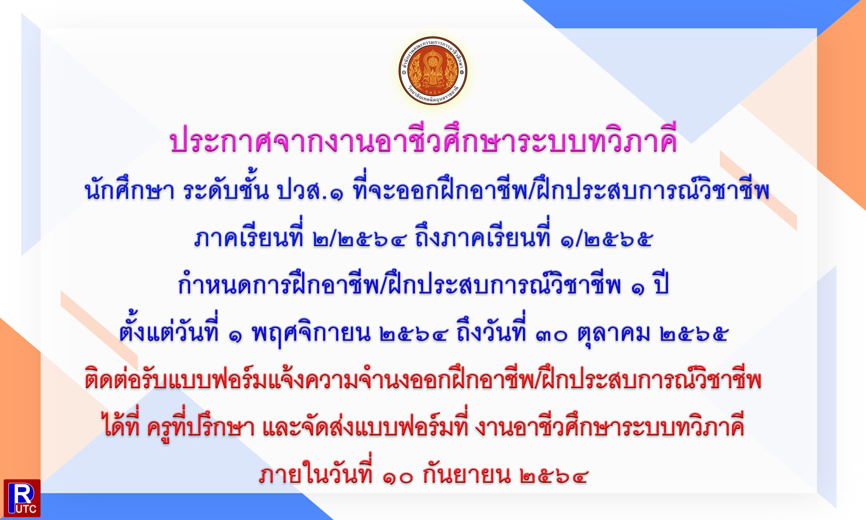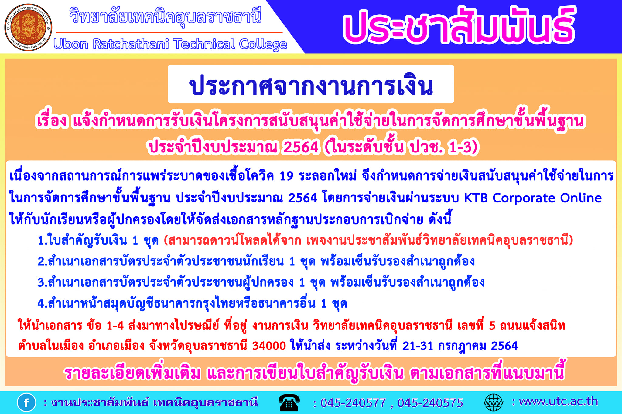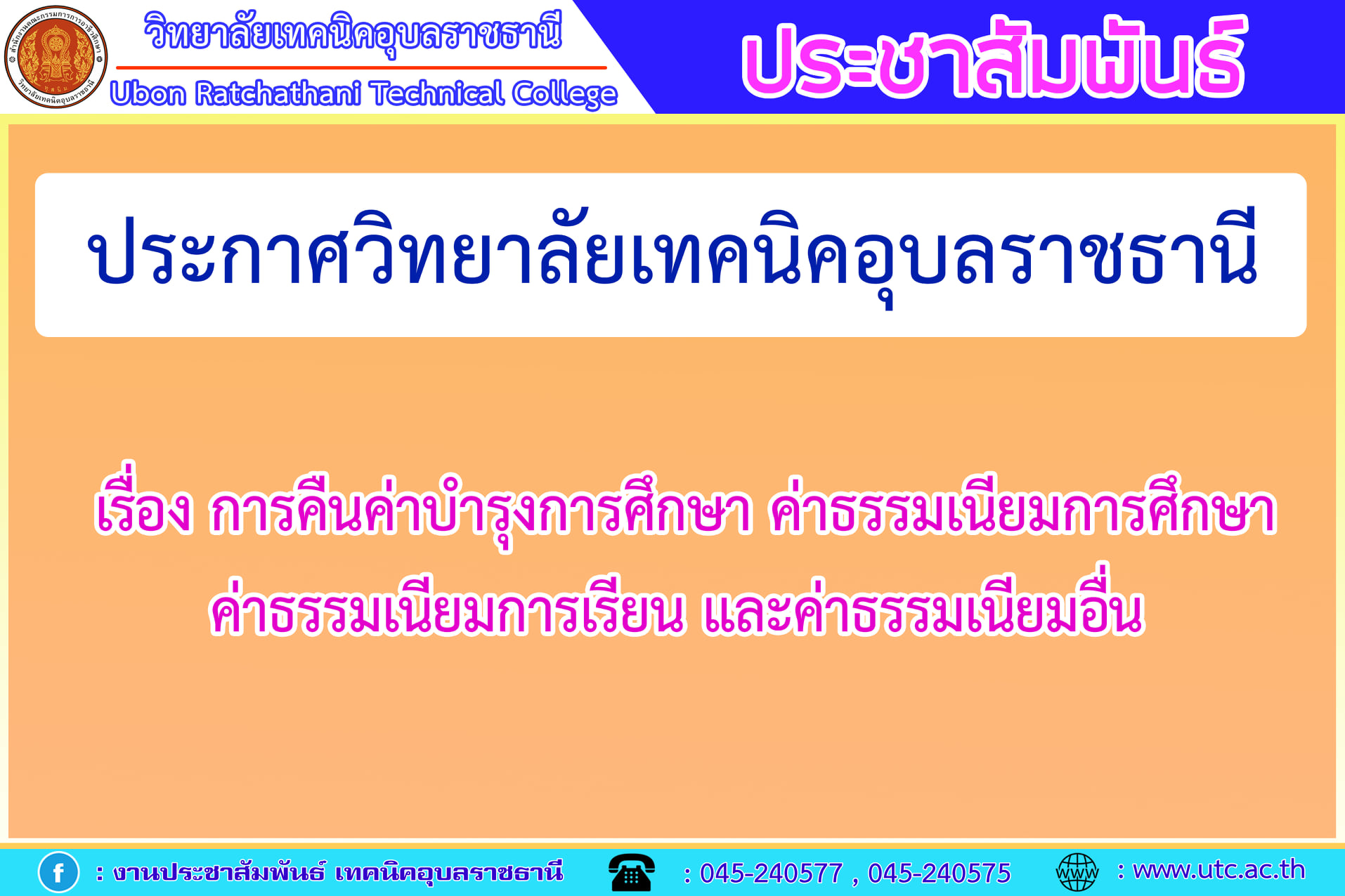 ประกาศจากวิทยาลัยเทคนิคอุบลราชธานี