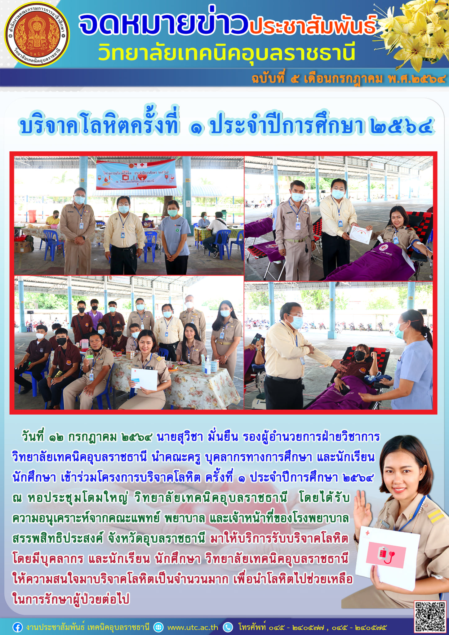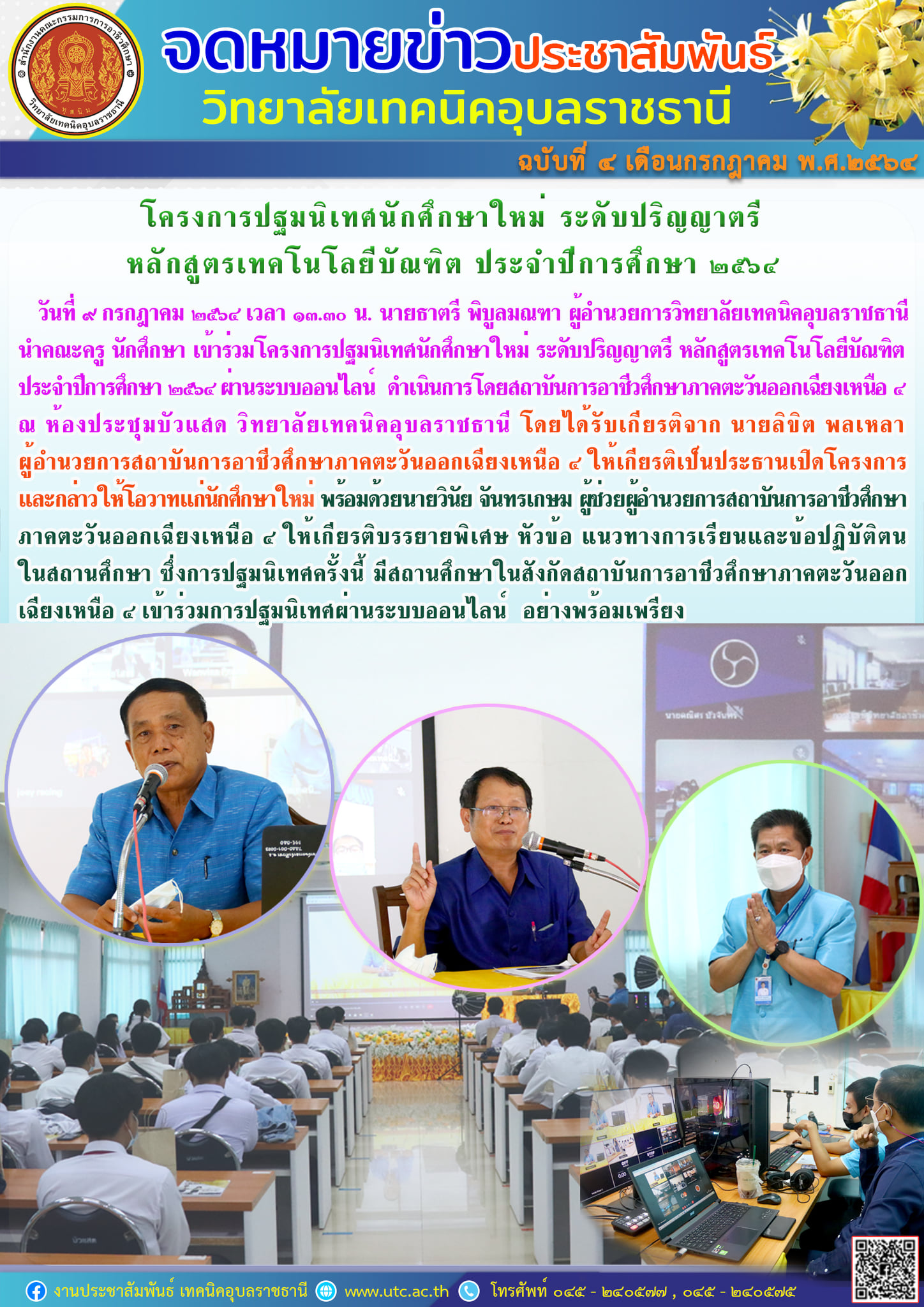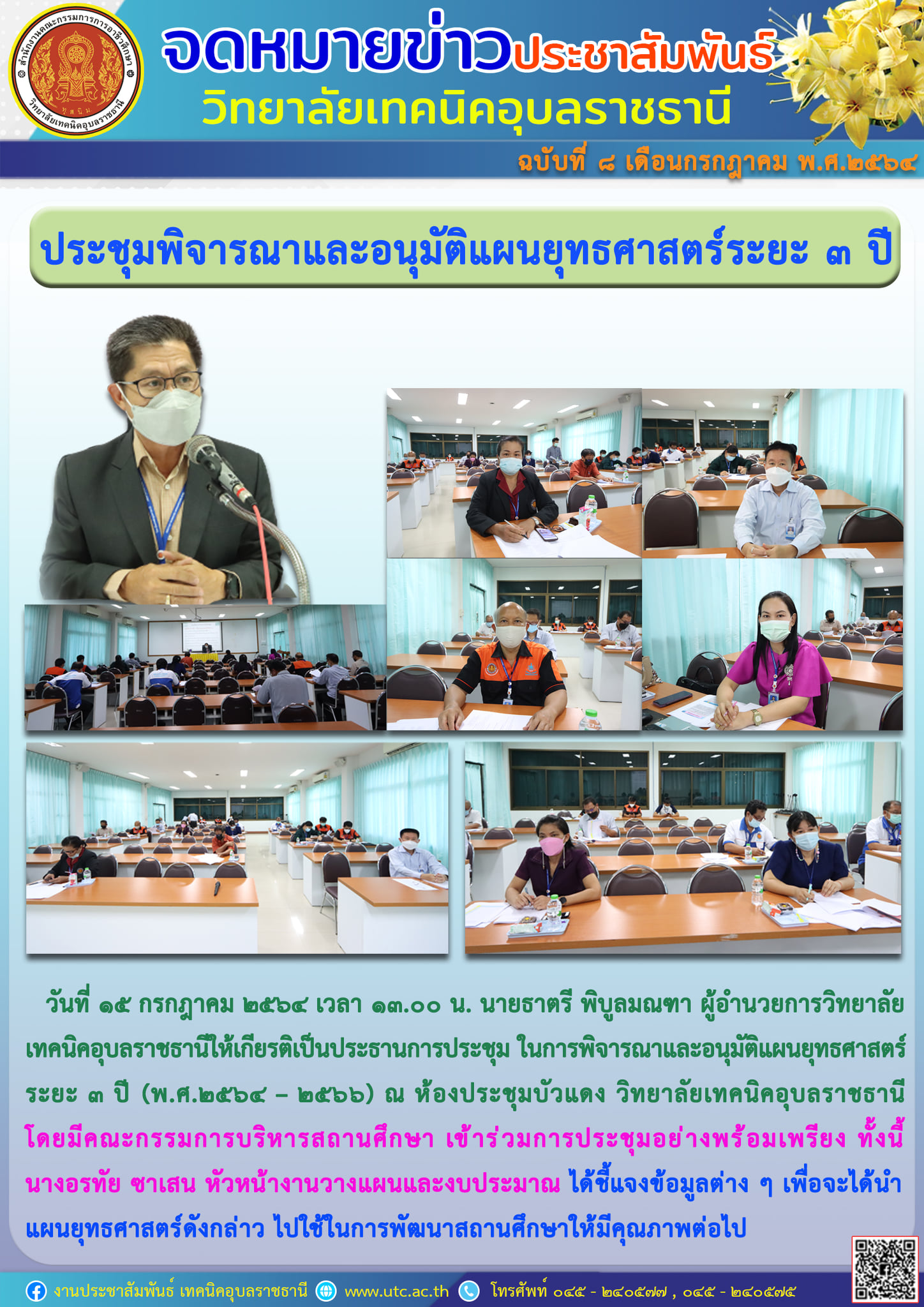 วันที่ ๑๕ กรกฎาคม ๒๕๖๔ เวลา ๑๓.๐๐ น. นายธาตรี พิบูลมณฑา ผู้อำนวยการวิทยาลัยเทคนิคอุบลราชธานี (เพิ่มเติม…)