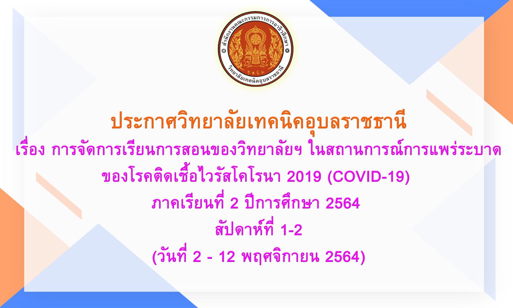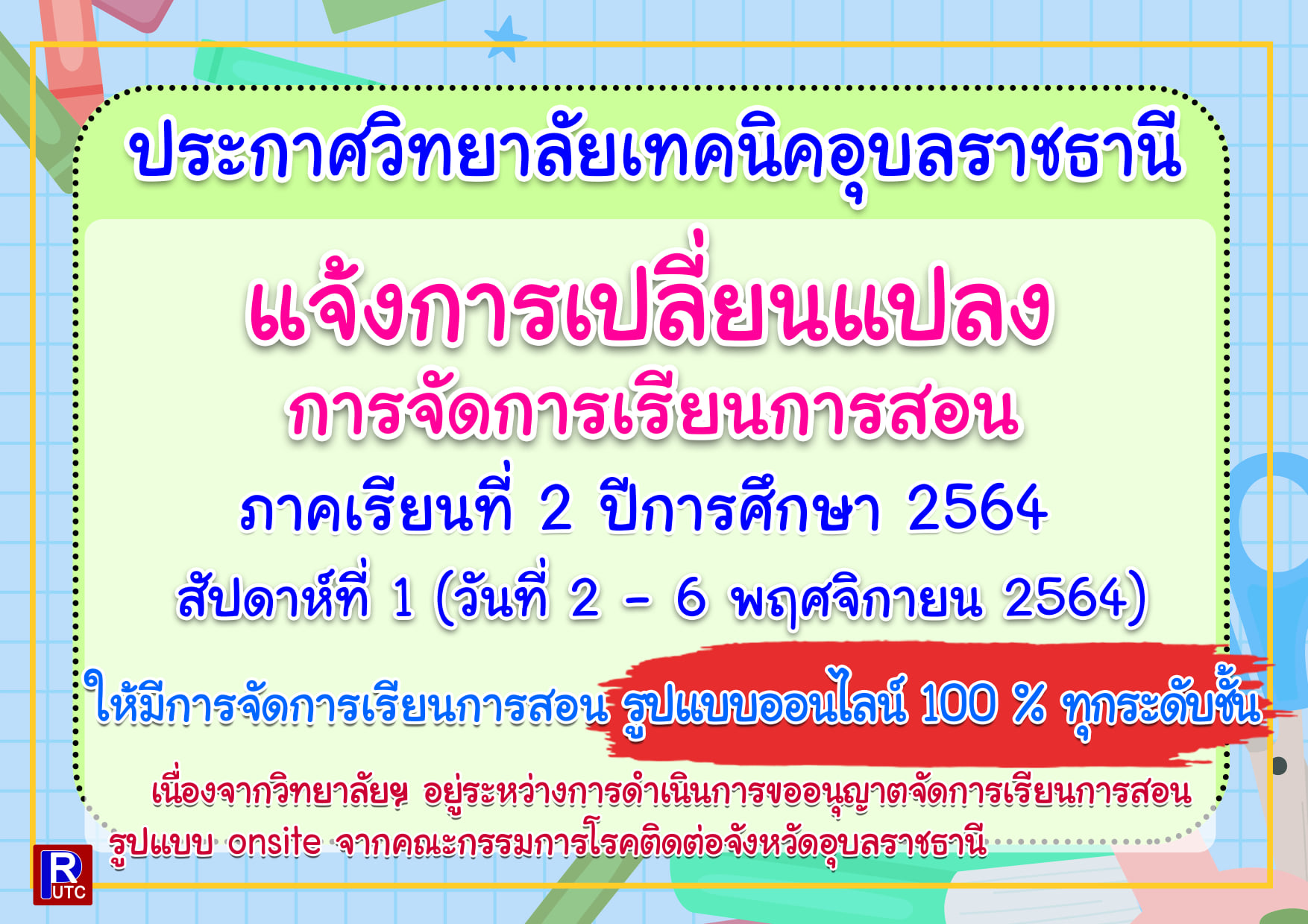 ประกาศ การเปิดภาคเรียนและรูปแบบการจัดการเรียนการสอน