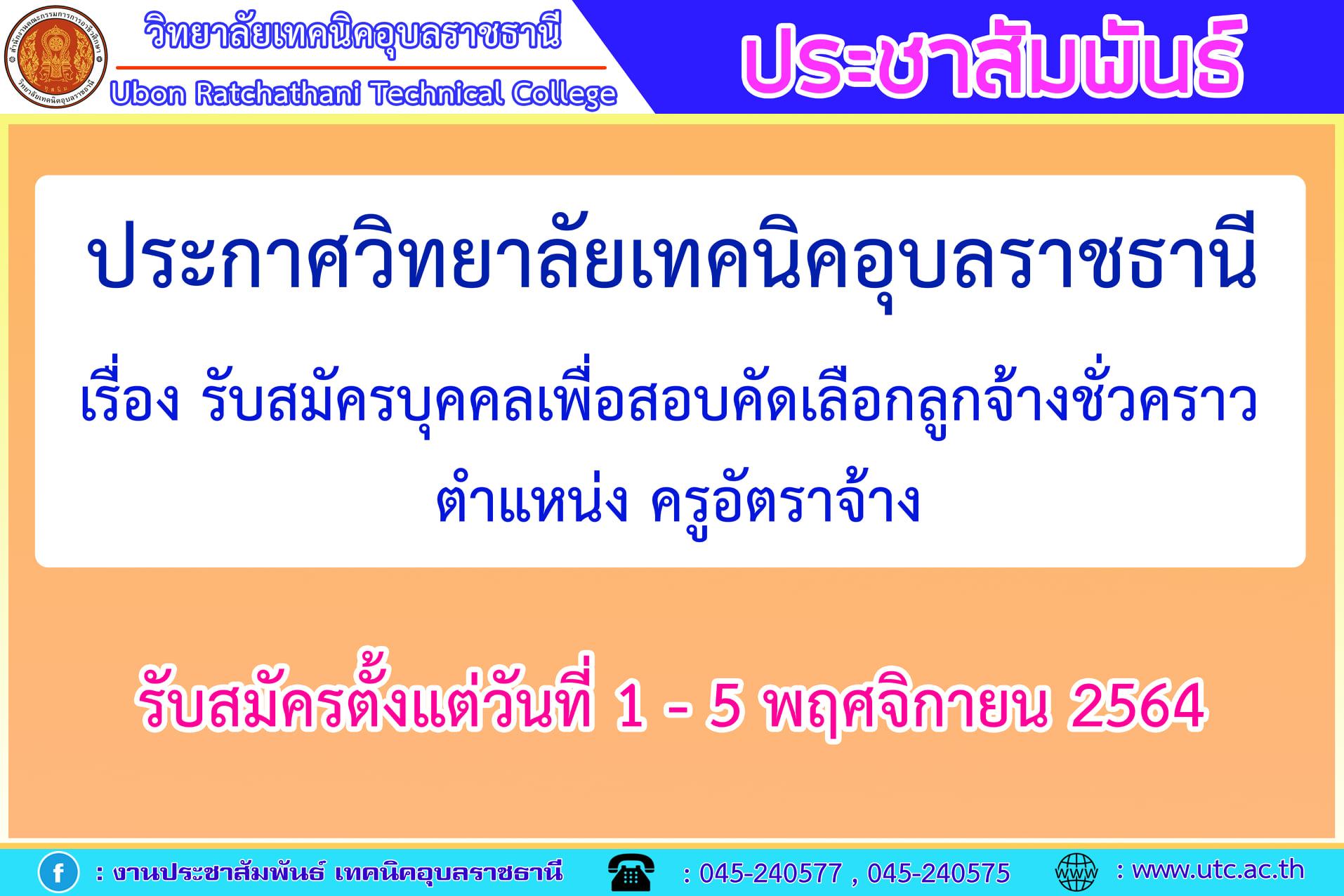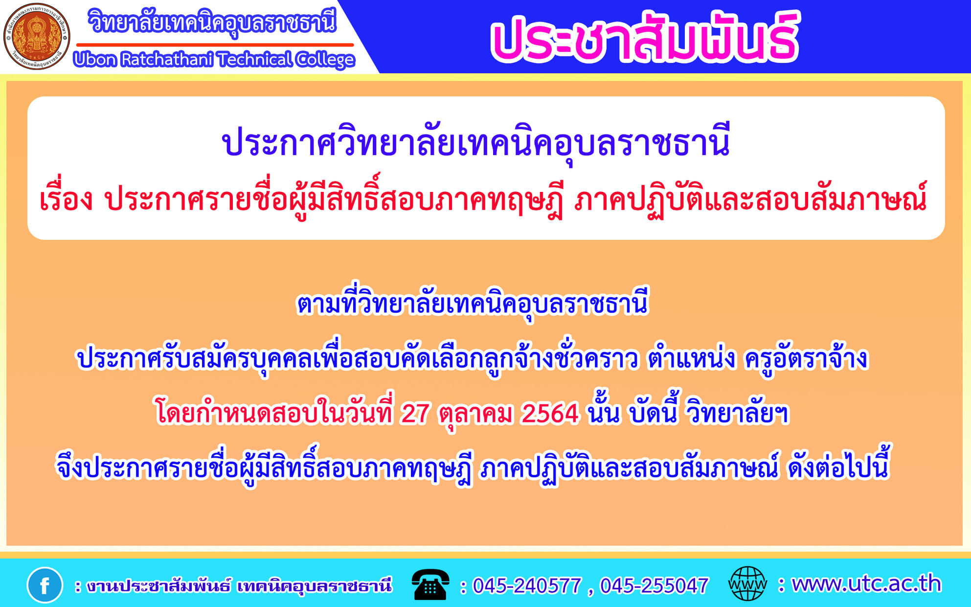 ประกาศวิทยาลัยเทคนิคอุบลราชธานี