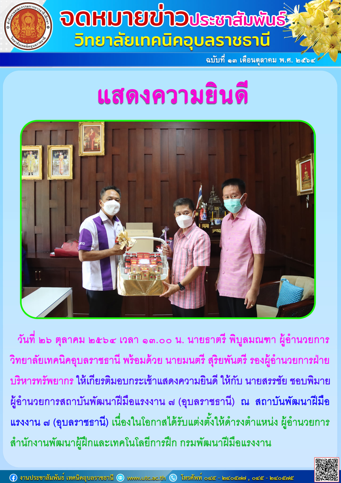 (ข่าว ปชส.วท.อบ.วันนี้) วันที่ ๒๗ ตุลาคม (เพิ่มเติม…)