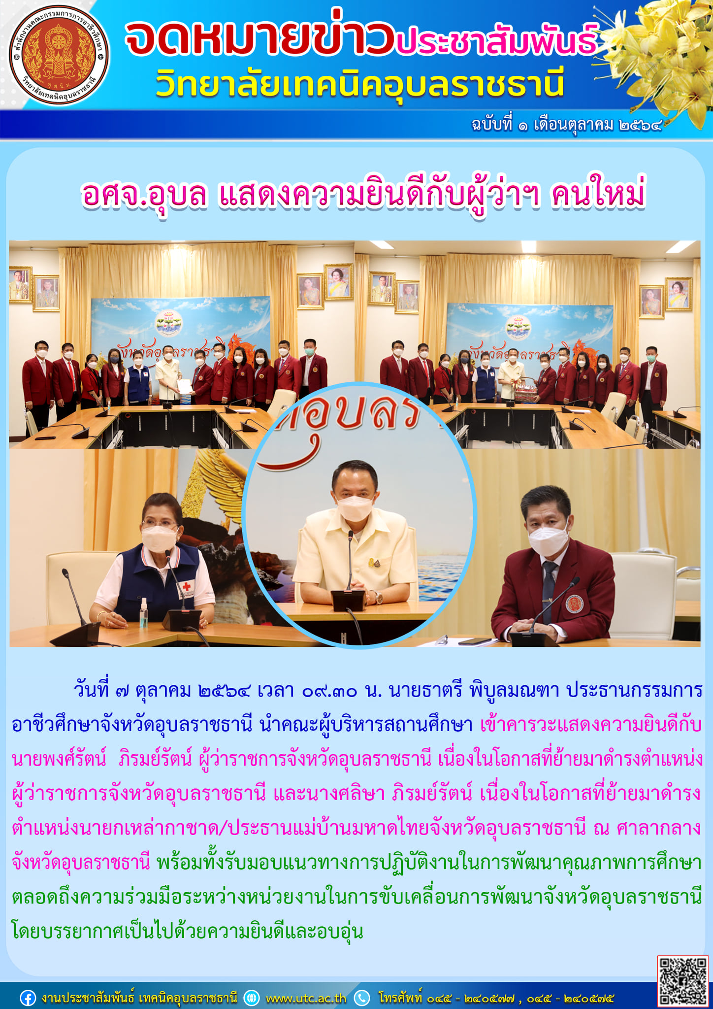 (ข่าว ปชส.วท.อบ. วันนี้) วันที่ ๗ ตุลาคม ๒๕๖๔ เวลา ๐๙.๓๐ น. นายธาตรี พิบูลมณฑา (เพิ่มเติม…)