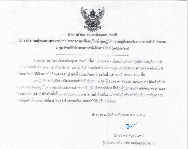 ประกาศวิทยาลัยเทคนิคอุบลราชธานี