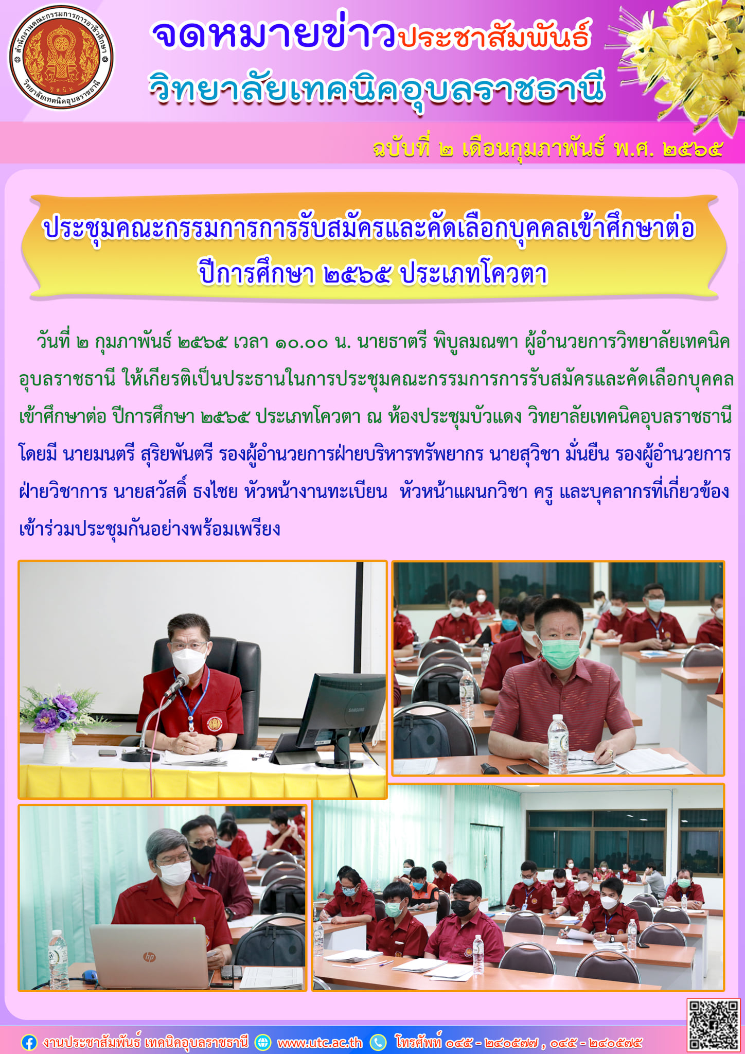 ผลการคัดเลือกนักศึกษา เข้าศึกษาต่อ ประเภทโควตา ประจำปีการศึกษา 2565