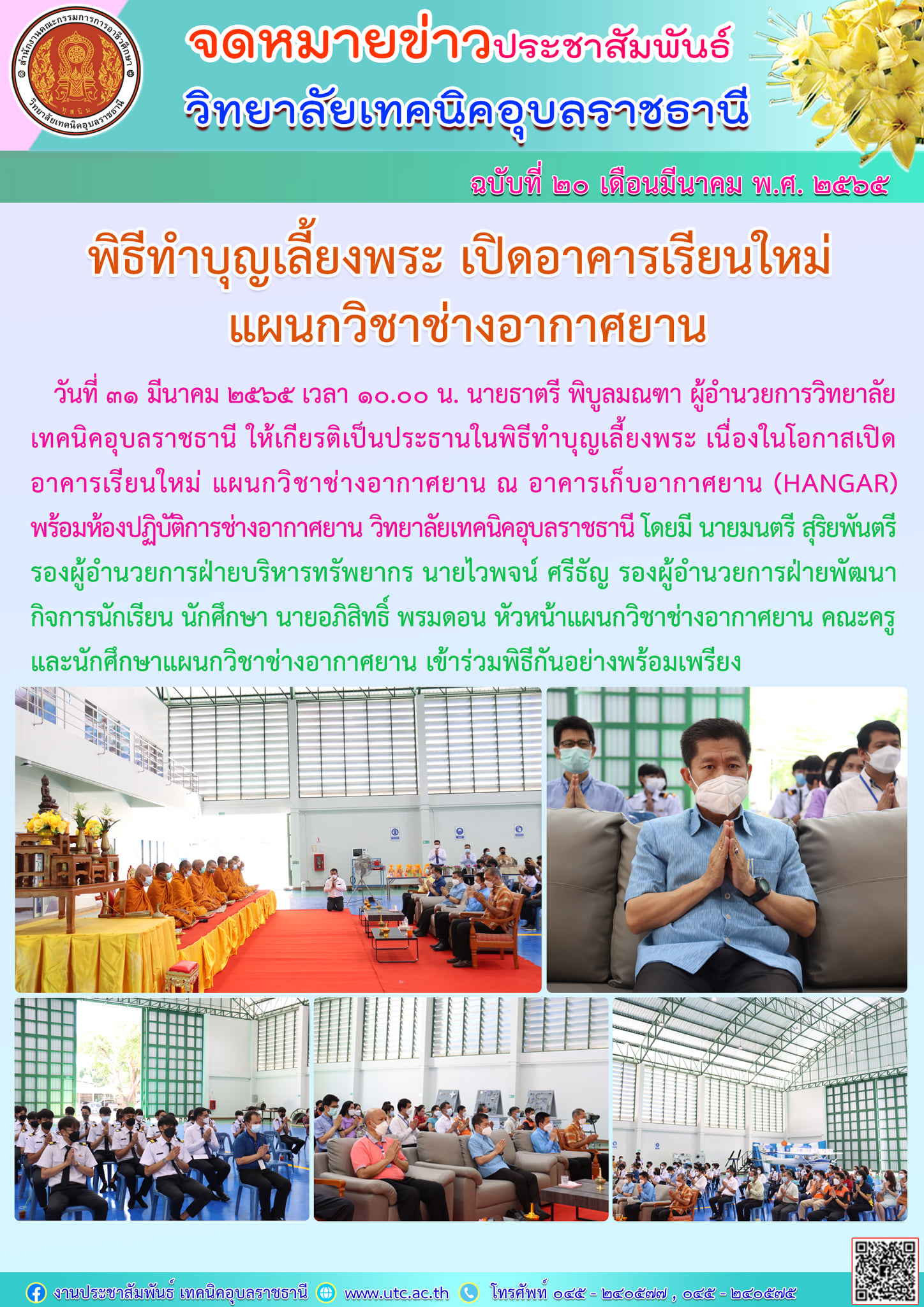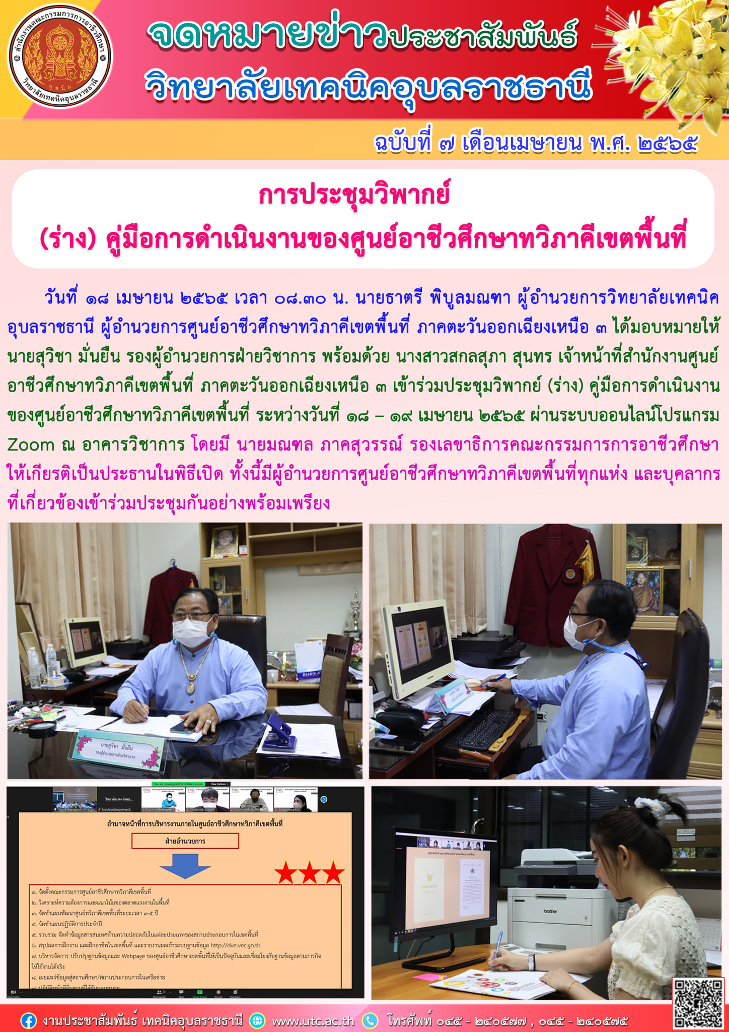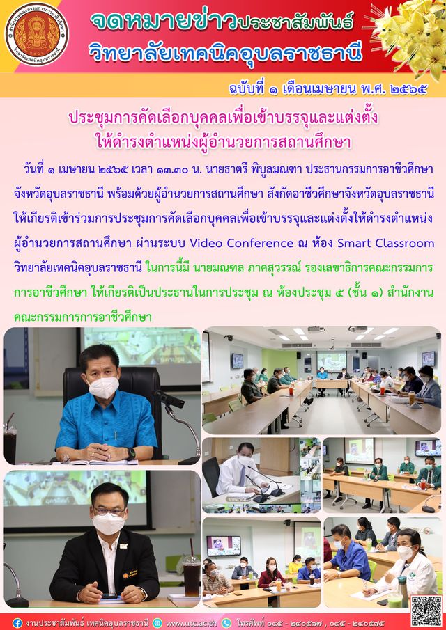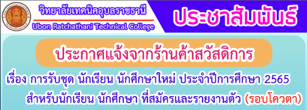 วันที่ ๘ เมษายน ๒๕๖๕ เวลา ๐๗.๐๙ น. นายธาตรี พิบูลมณฑา ผู้อำนวยการวิทยาลัยเทคนิคอุบลราชธานี (เพิ่มเติม…)
