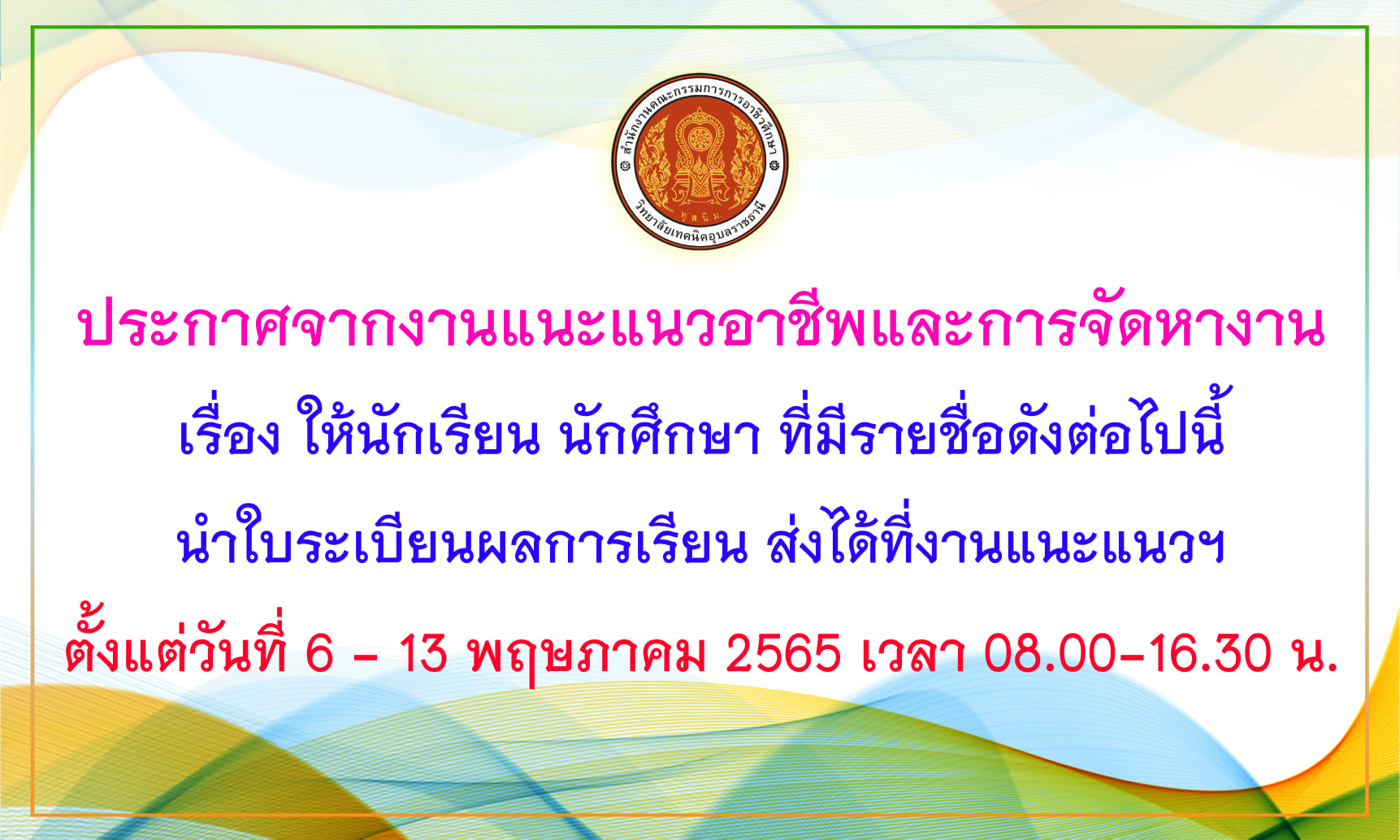 ประกาศวิทยาลัยเทคนิคอุบลราชธานี