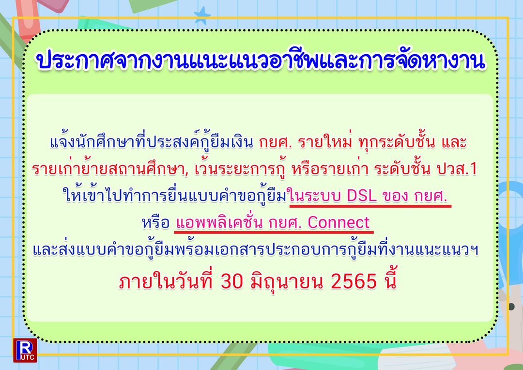 แจ้งนักศึกษาที่ประสงค์กู้ยืมเงิน กยศ. รายใหม่ ทุกระดับชั้น (เพิ่มเติม…)