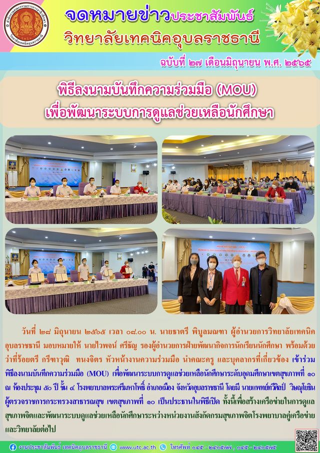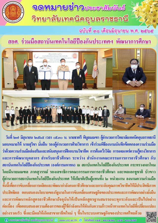 ที่ผ่านมาวันที่ ๒๗ มิถุนายน ๒๕๖๕ เวลา ๐๙.๓๐ น. นายธาตรี พิบูลมณฑา ผู้อำนวยการวิทยาลัยเทคนิค (เพิ่มเติม…)