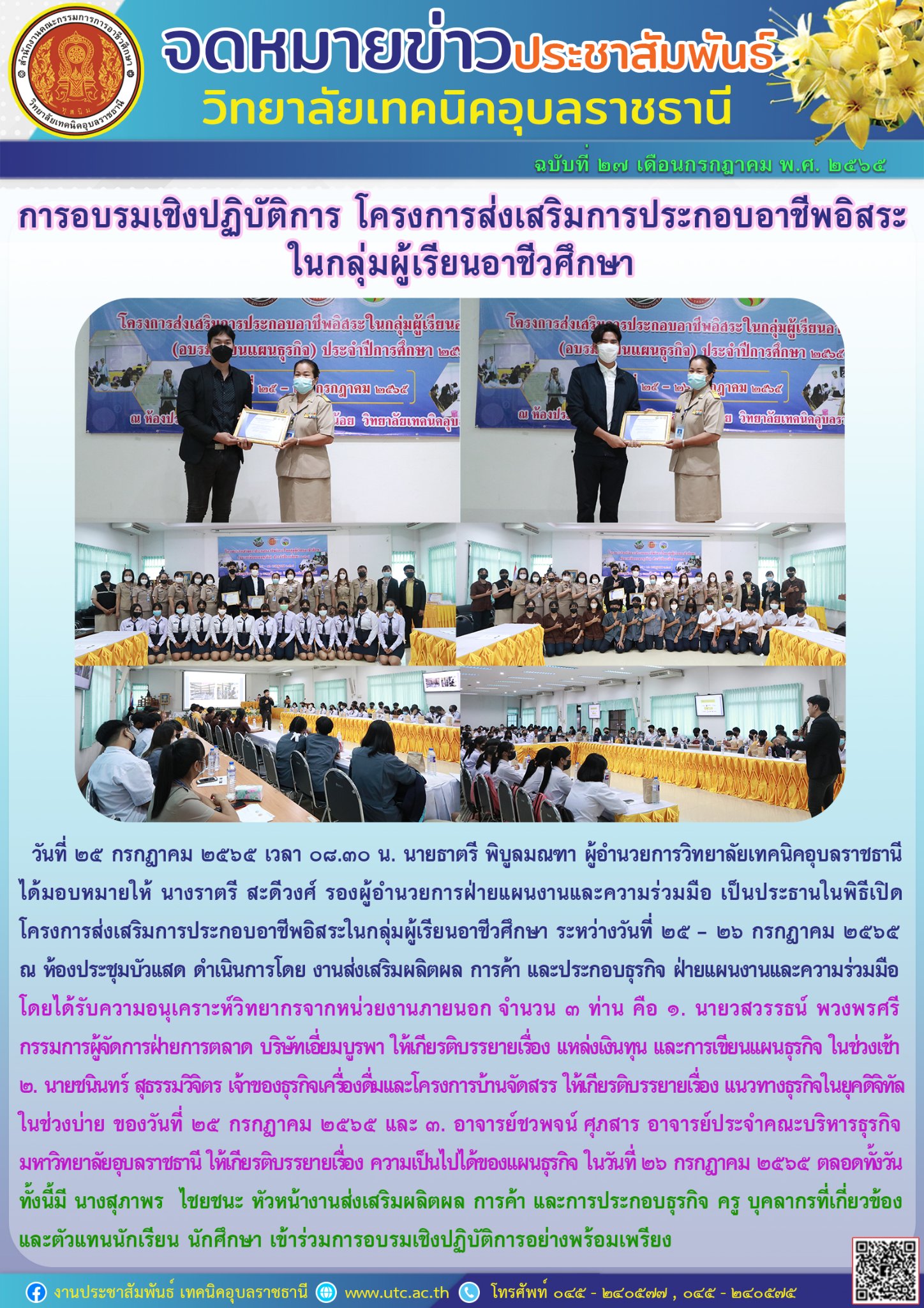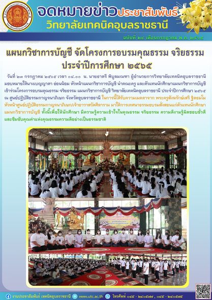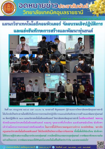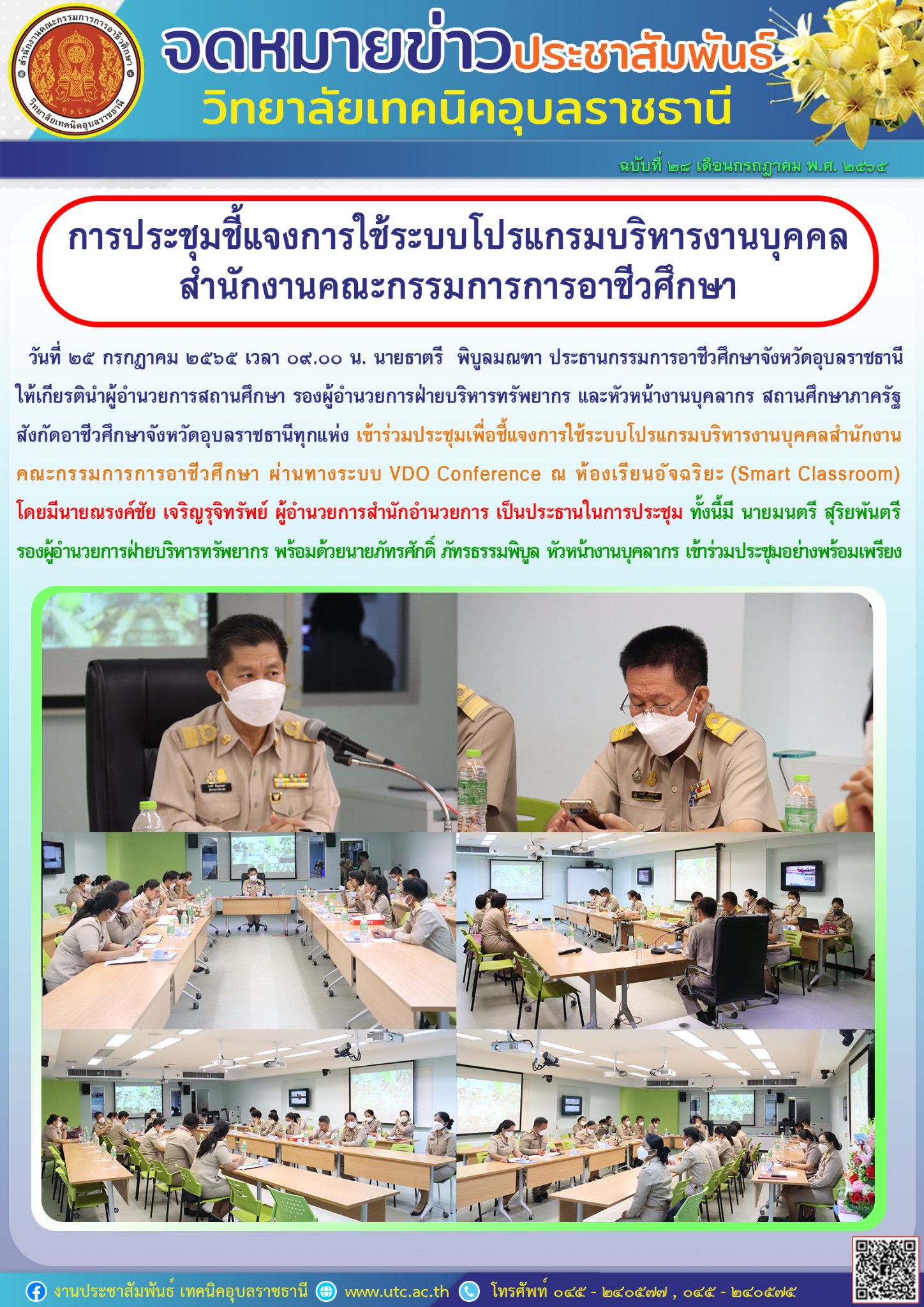 วันที่ ๒๕ กรกฎาคม ๒๕๖๕ เวลา ๐๘.๓๐ น. นายธาตรี พิบูลมณฑา ผู้อำนวยการวิทยาลัยเทคนิคอุบลราชธานี ได้มอบหมายให้ นางราตรี (เพิ่มเติม…)
