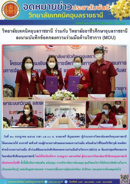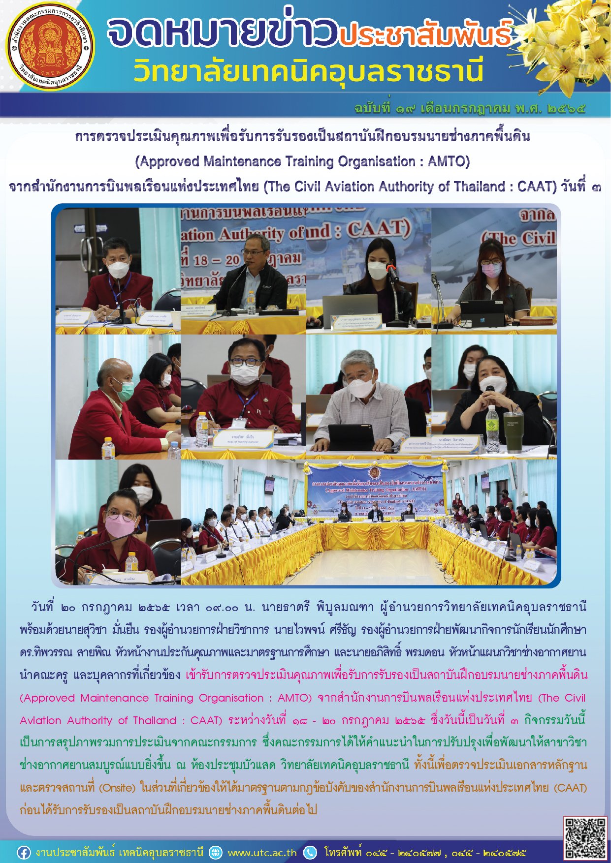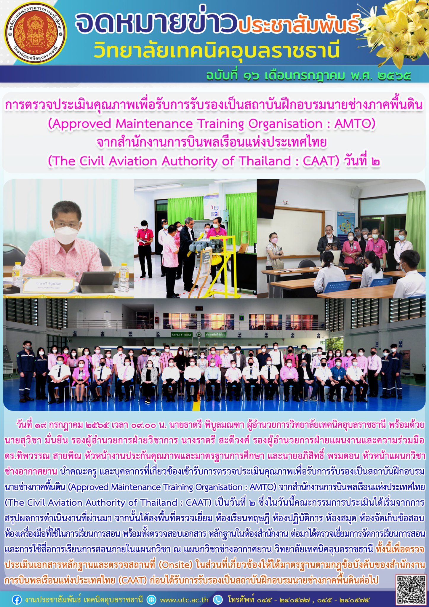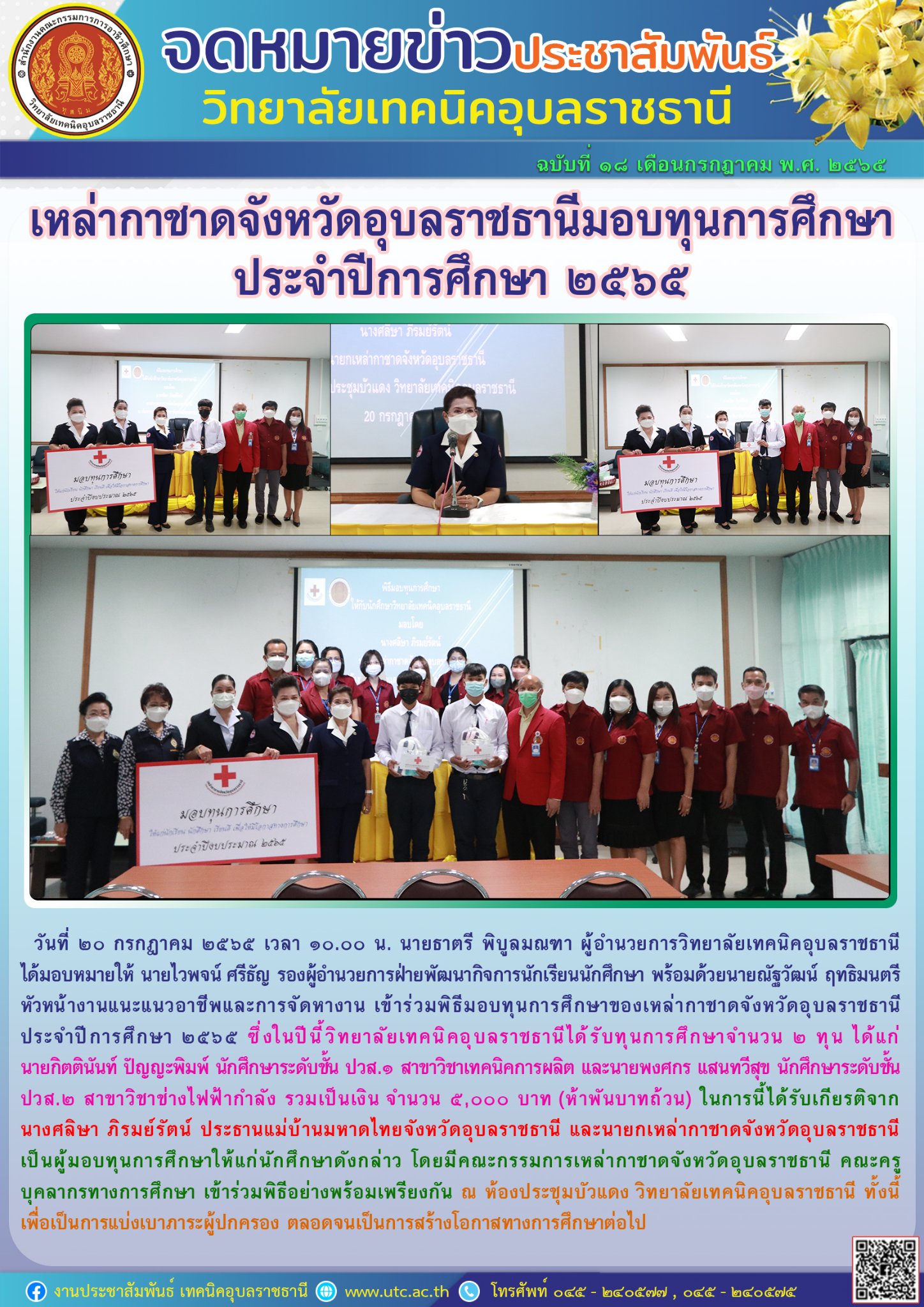 วันที่ ๒๑ กรกฎาคม ๒๕๖๕ เวลา ๐๗.๓๐ น. นายธาตรี พิบูลมณฑา ผู้อำนวยการวิทยาลัยเทคนิคอุบลราชธานี พร้อมด้วยนางสุภาพร ไชยชนะ หัวหน้างานส่งเสริมผลิตผล (เพิ่มเติม…)