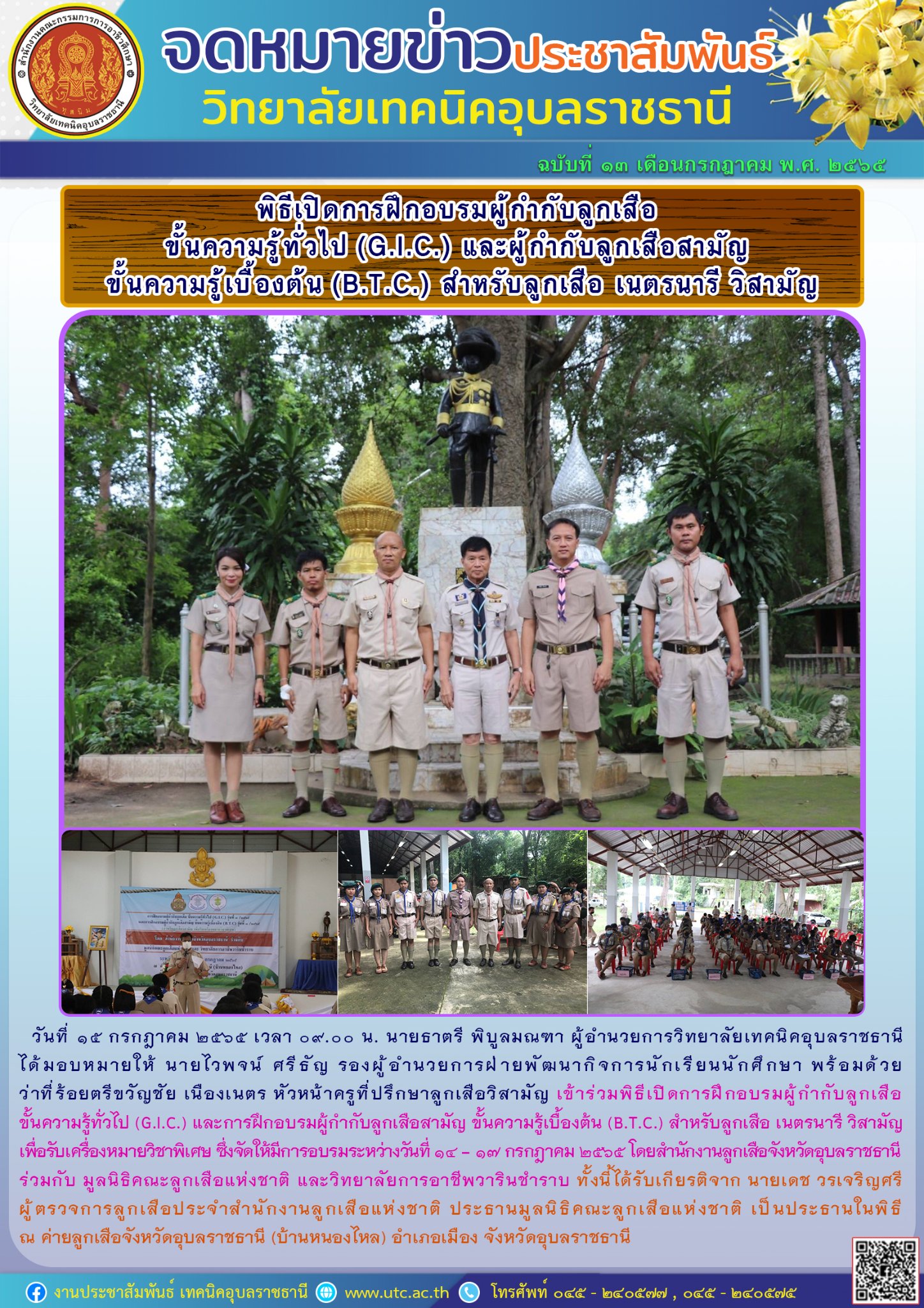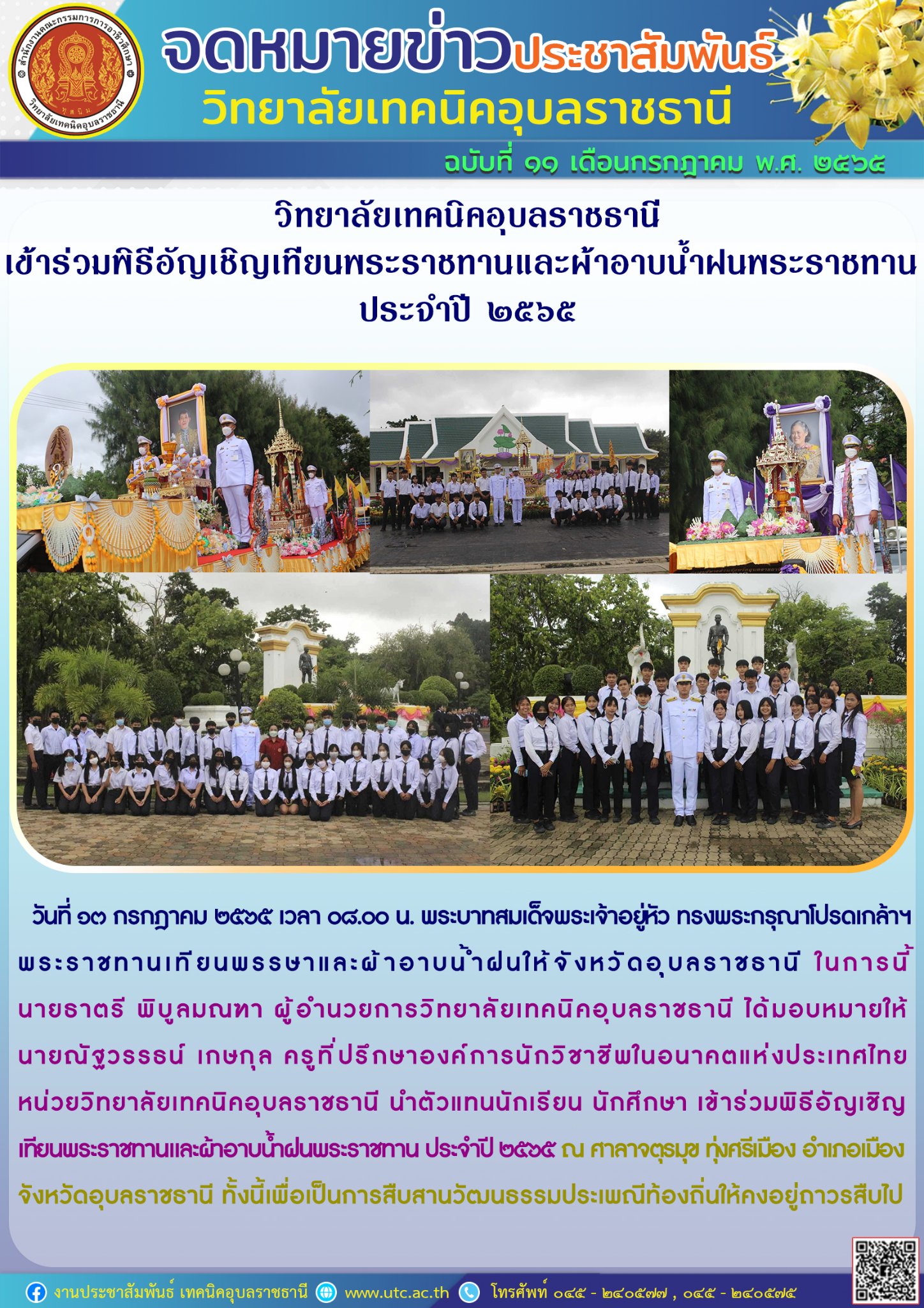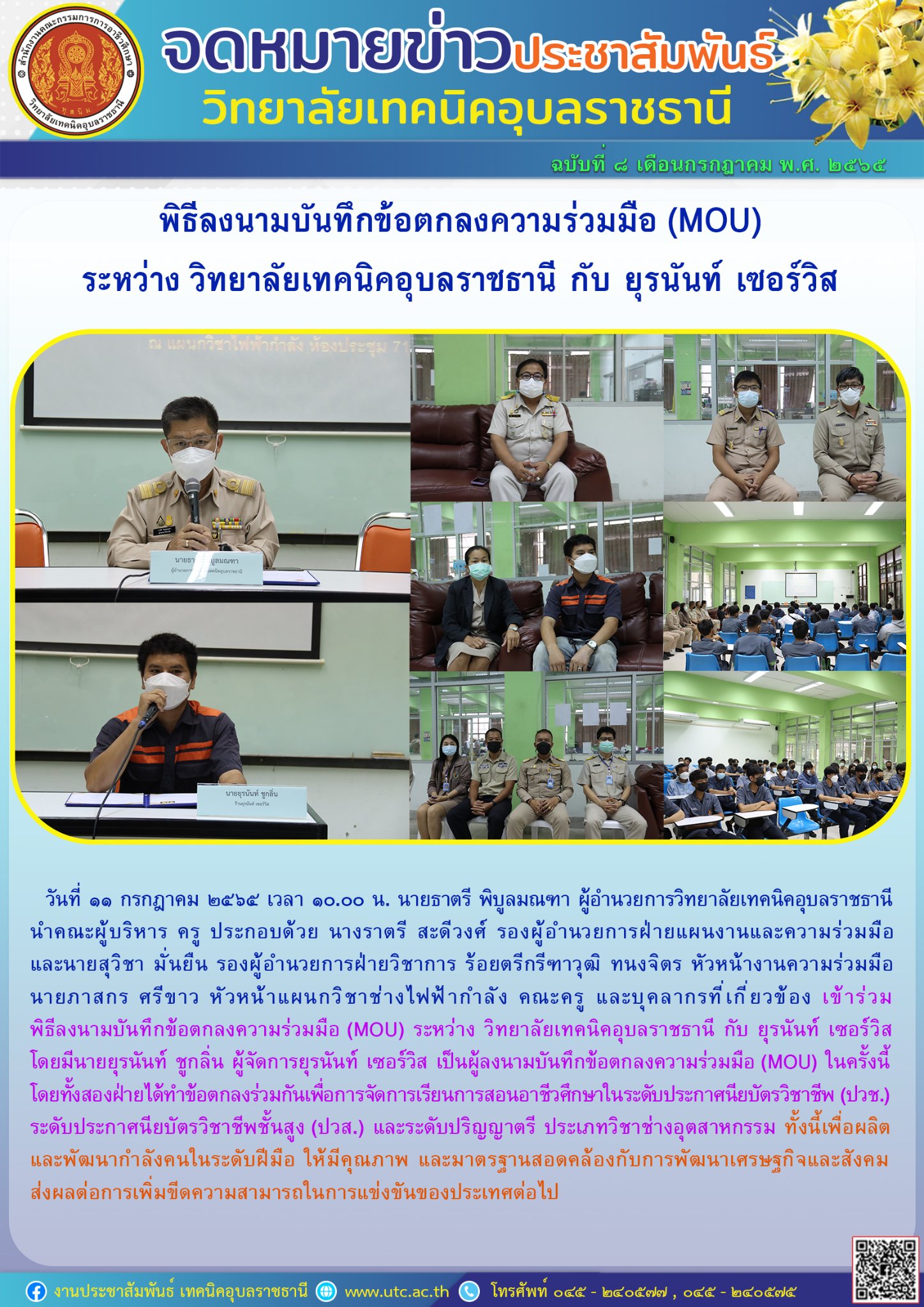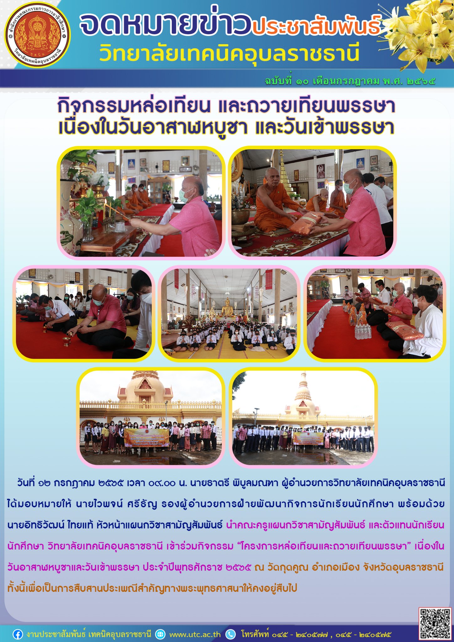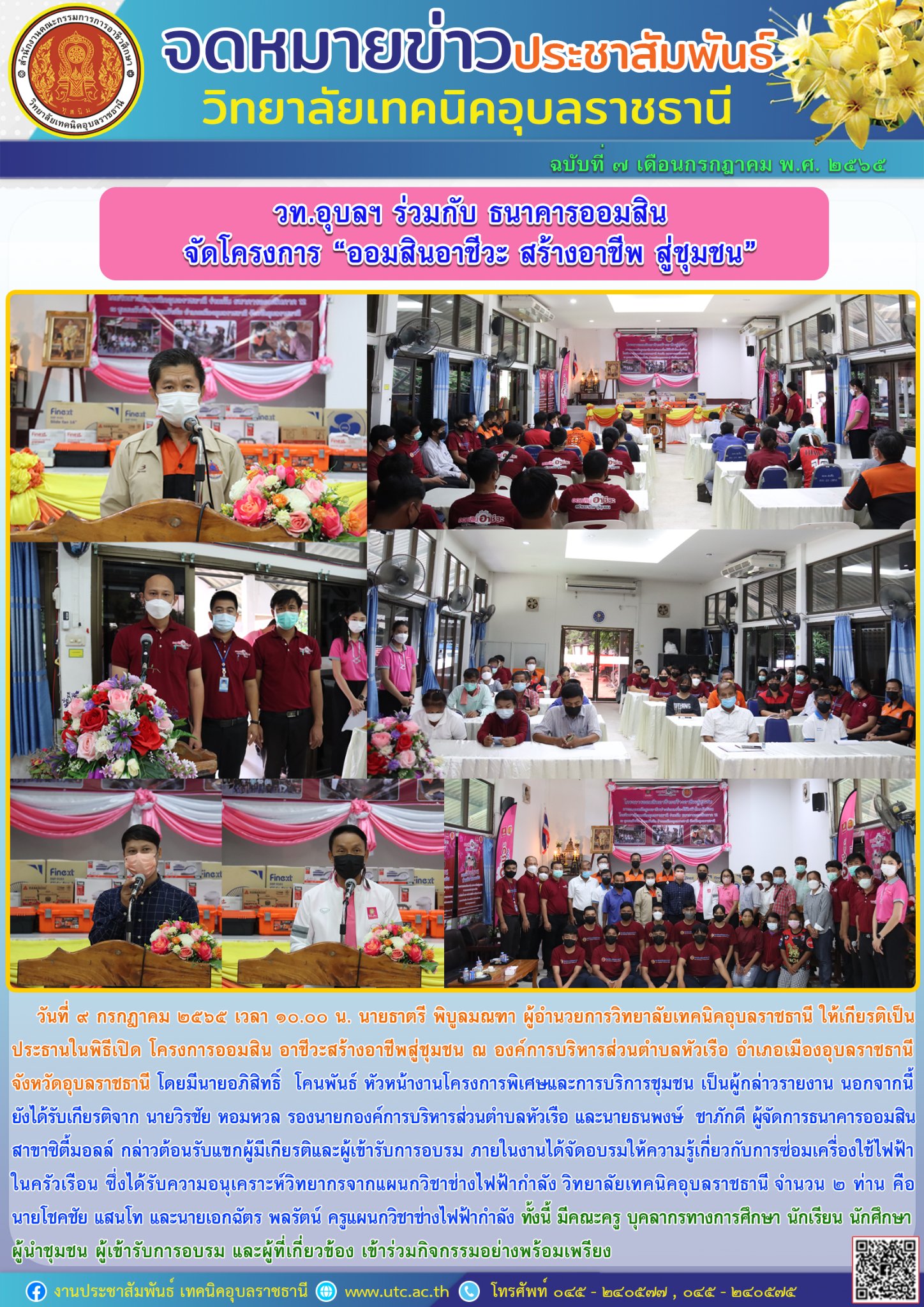 วันที่ ๙ กรกฎาคม ๒๕๖๕ เวลา ๑๐.๐๐ น. นายธาตรี พิบูลมณฑา ผู้อำนวยการวิทยาลัยเทคนิคอุบล (เพิ่มเติม…)