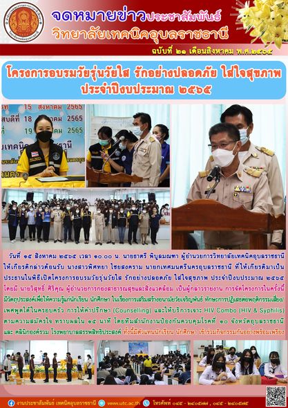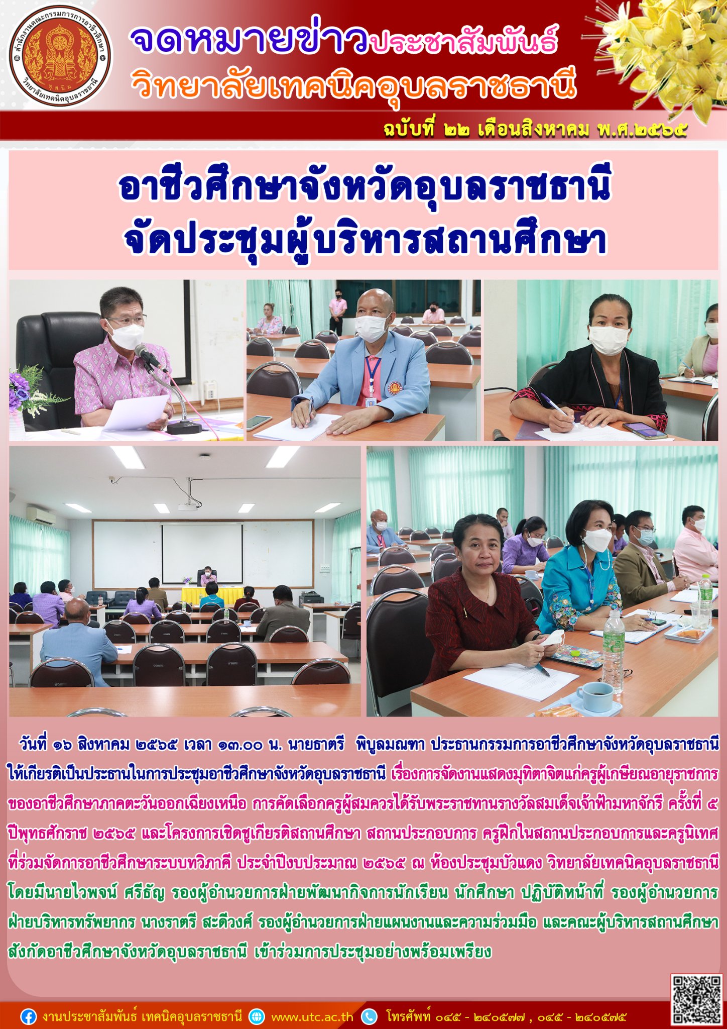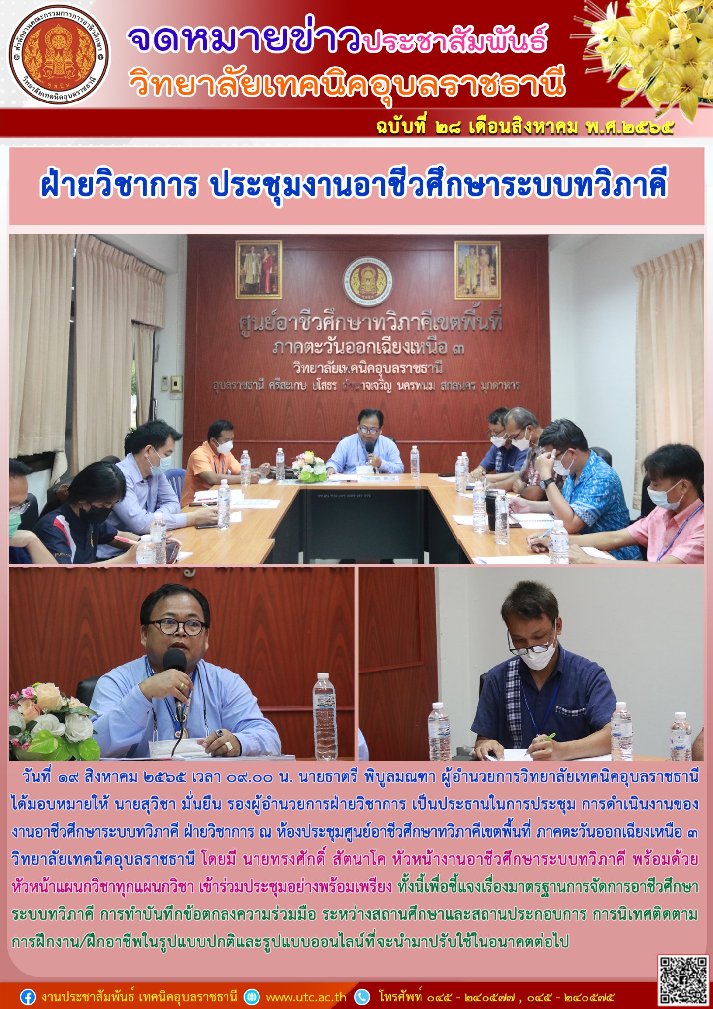 วันที่ ๑๗ สิงหาคม ๒๕๖๕ เวลา ๑๓.๐๐ น. นายธาตรี พิบูลมณฑา ผู้อำนวยการวิทยาลัยเทคนิคอุบลราชธานี (เพิ่มเติม…)