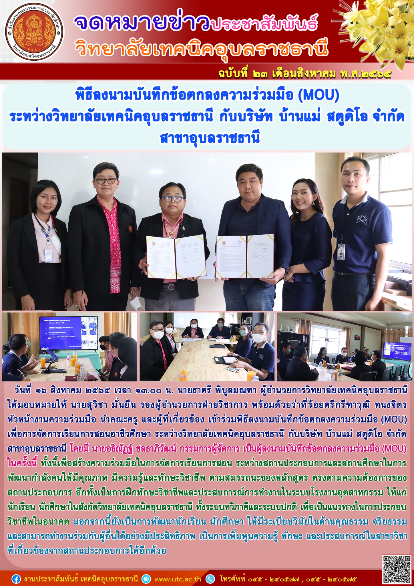 วันที่ ๑๕ สิงหาคม ๒๕๖๕ เวลา ๑๐.๐๐ น. นายธาตรี พิบูลมณฑาผู้อำนวยการวิทยาลัยเทคนิคอุบลราชธานี (เพิ่มเติม…)