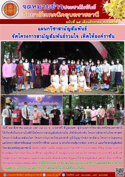 วันที่ ๑๗ สิงหาคม ๒๕๖๕ เวลา ๐๙.๐๐ น. นายธาตรี พิบูลมณฑา ผู้อำนวยการวิทยาลัยเทคนิคอุบลราชธานี (เพิ่มเติม…)