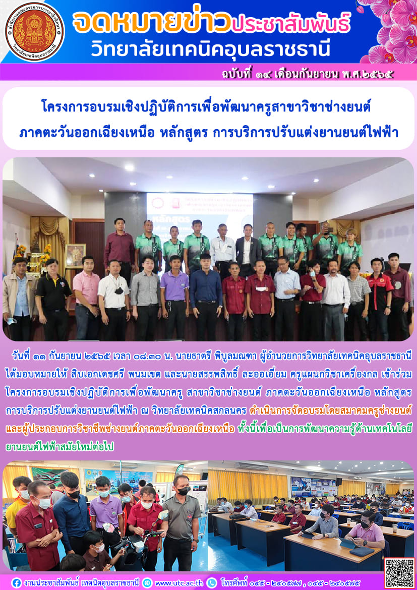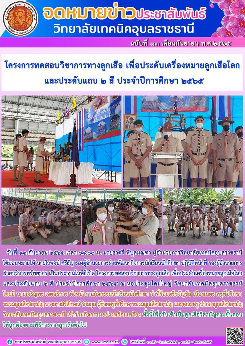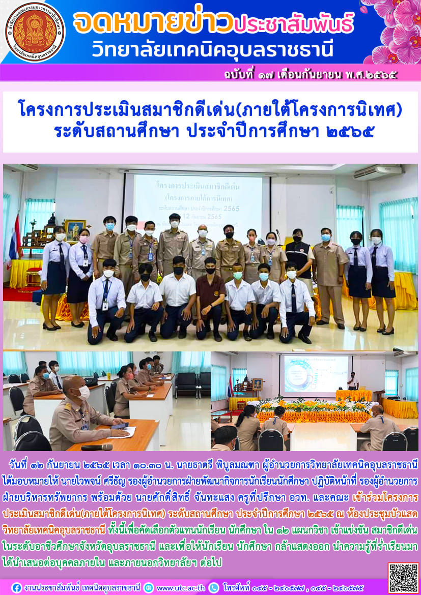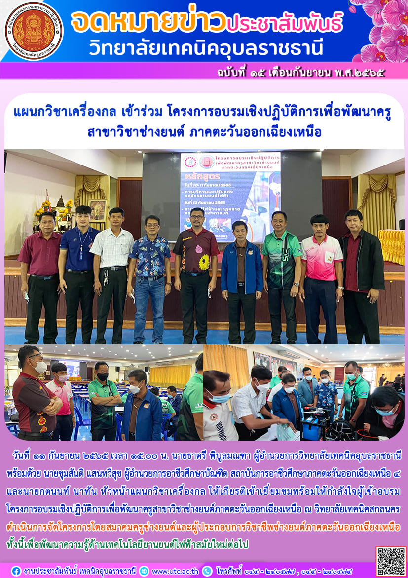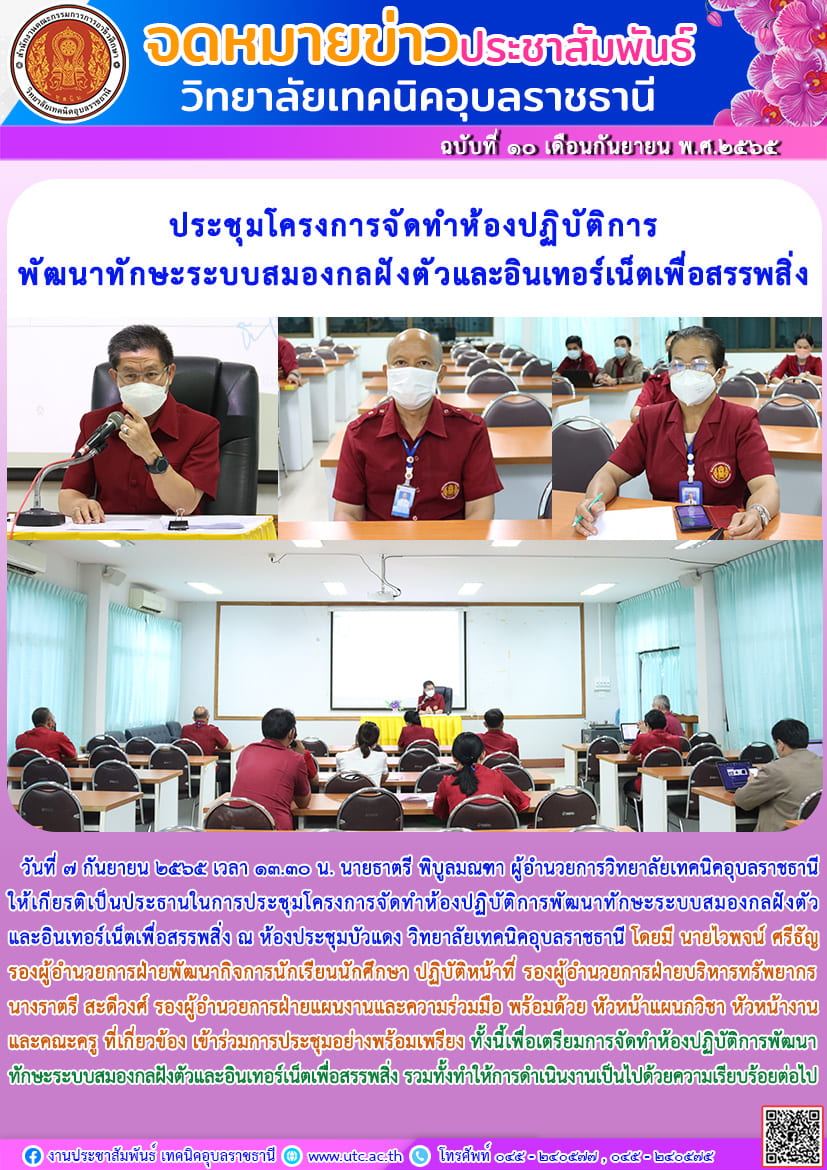 วันที่ ๗ กันยายน ๒๕๖๕ เวลา ๑๓.๓๐ น. นายธาตรี พิบูลมณฑา ผู้อำนวยการวิทยาลัยเทคนิคอุบลราชธานี (เพิ่มเติม…)
