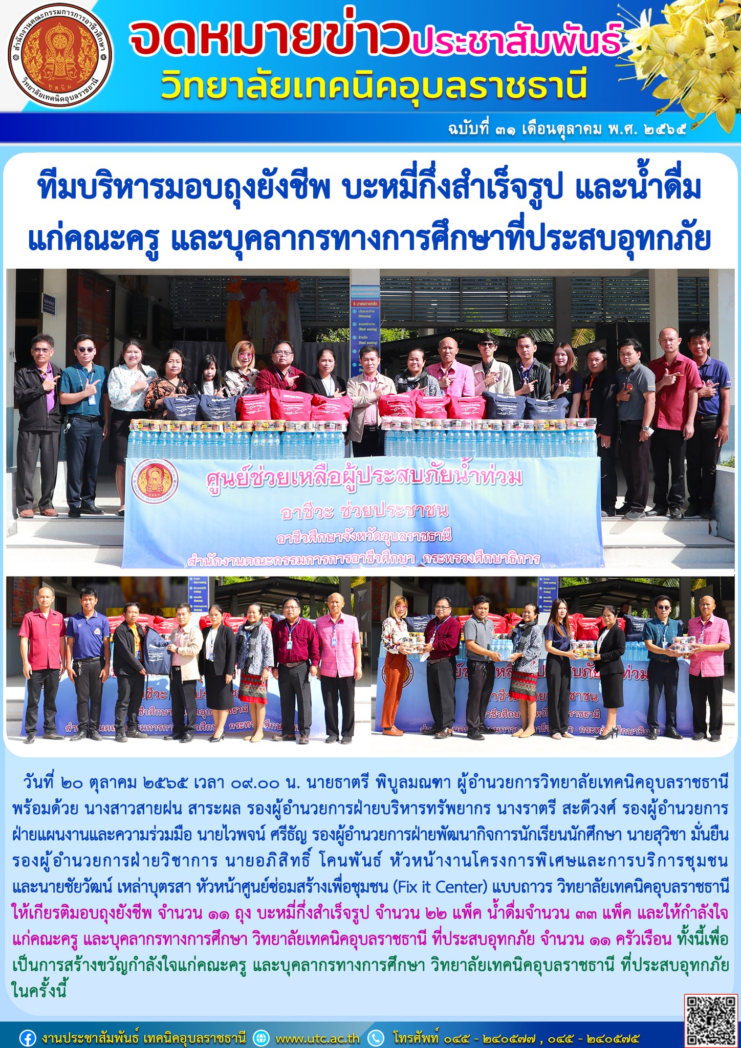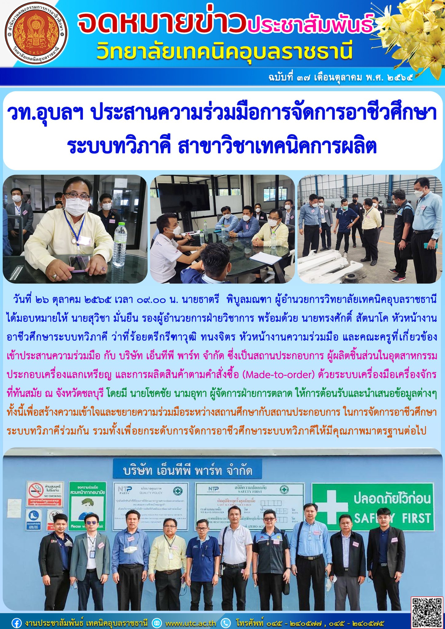 วันที่ ๒๖ ตุลาคม ๒๕๖๕ เวลา ๑๓.๓๐ น. นายธาตรี พิบูลมณฑา ผู้อำนวยการวิทยาลัยเทคนิคอุบลราชธานี (เพิ่มเติม…)